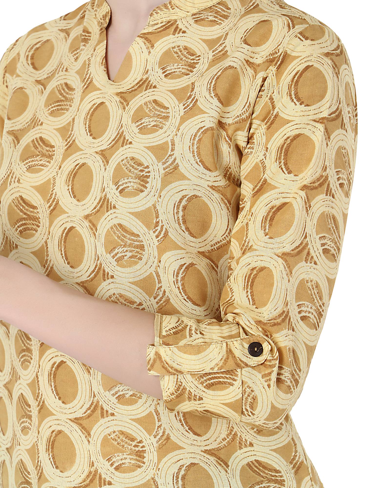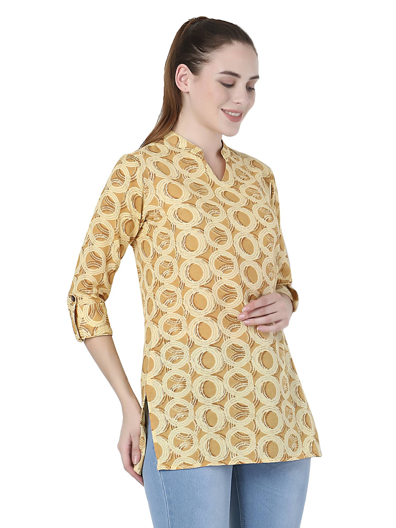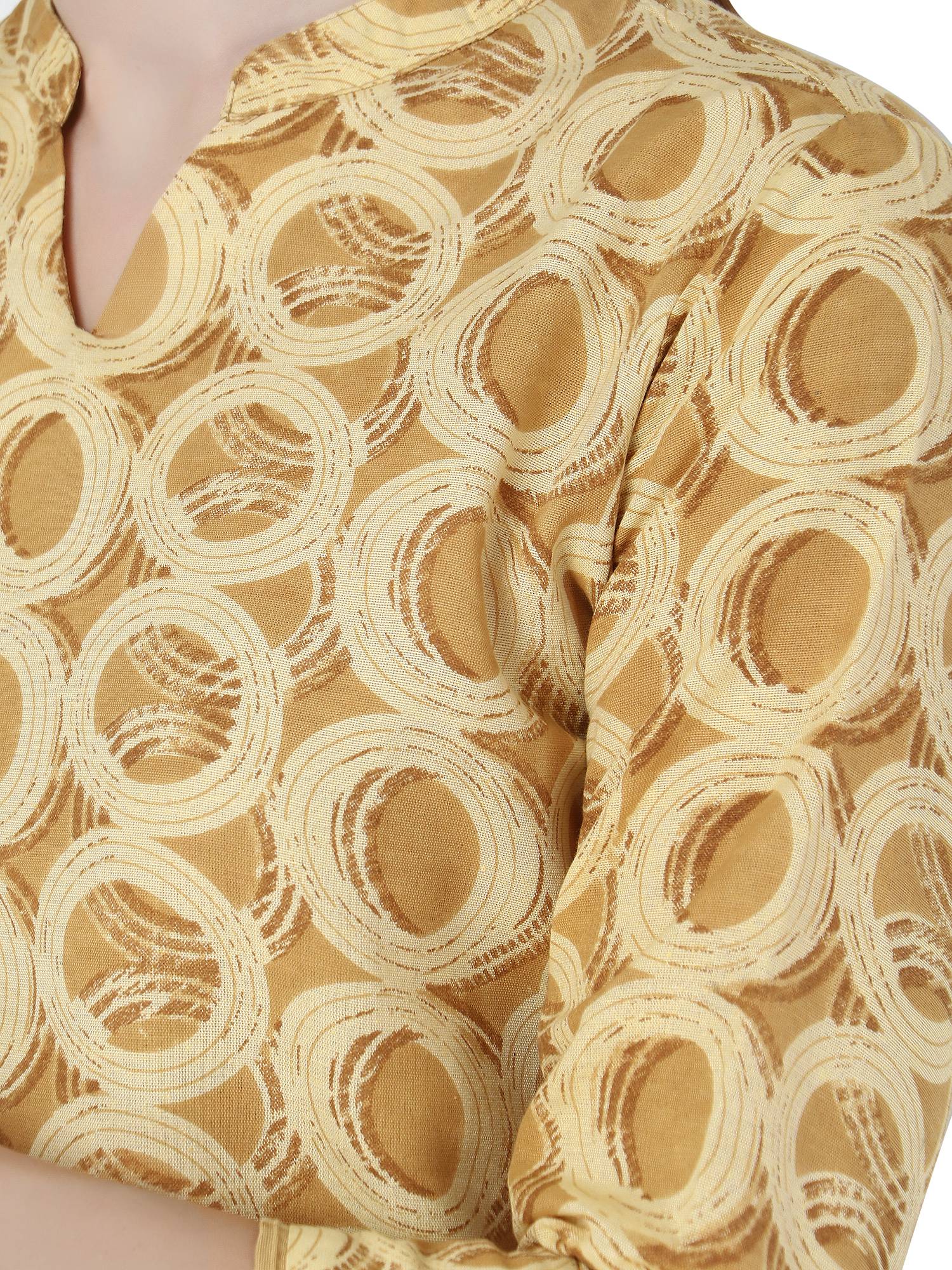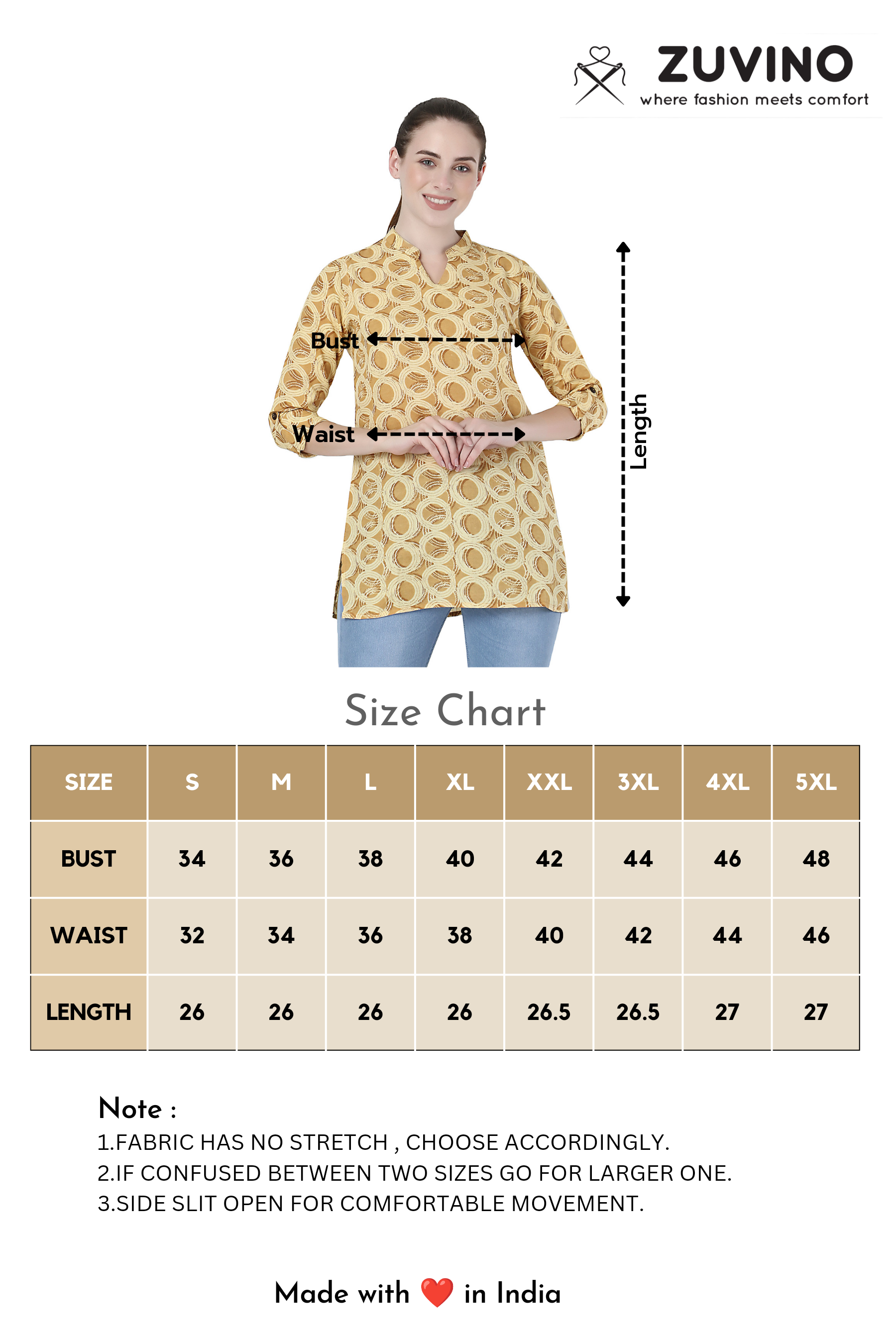 A stunning addition to your ethnic wardrobe, this printed short kurti comes with a Chinese collared neck, three-quarter sleeves with folded look and loop & side open slits for easy movement. Abstract prints on soft & breathable cotton fabrics make sure that you are at ease whole day. Ideal for casual or formal wear, this kurti makes sure you make impact everywhere.