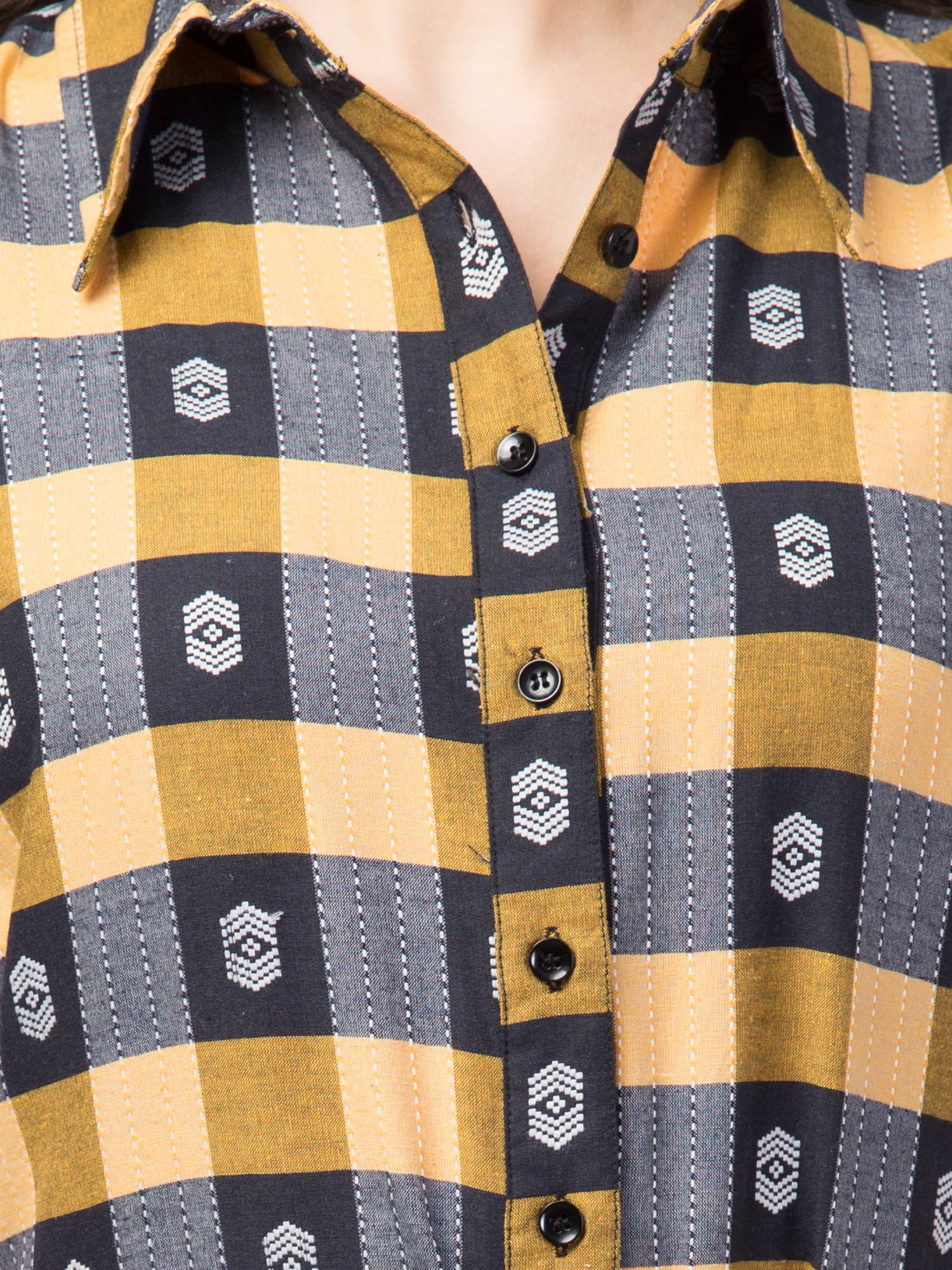 • Half-sleeved, Collared, Button Closure, Shirt-style Design.