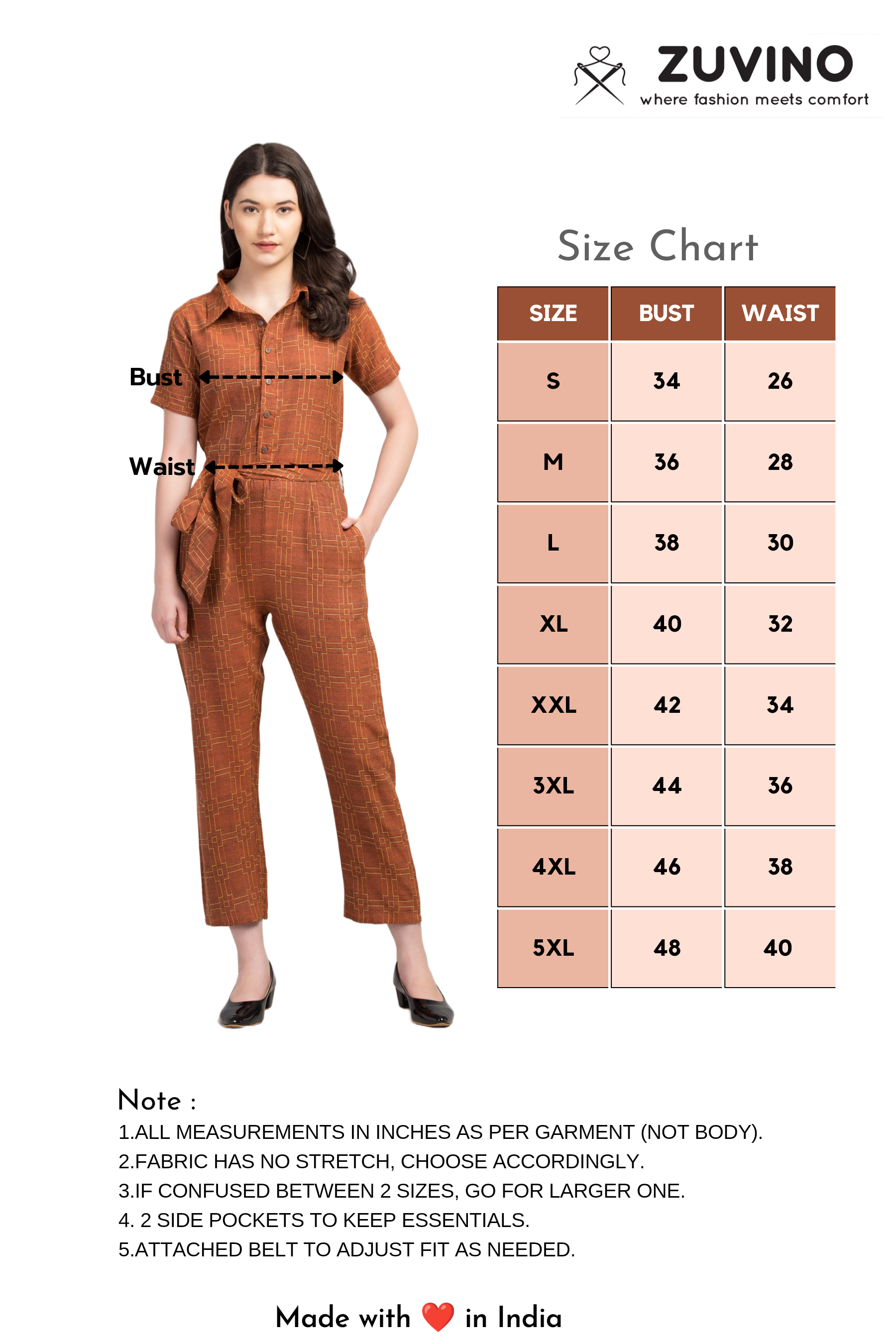 • Elasticated Back and Separate Fabric Belt for a Perfect Fit.
