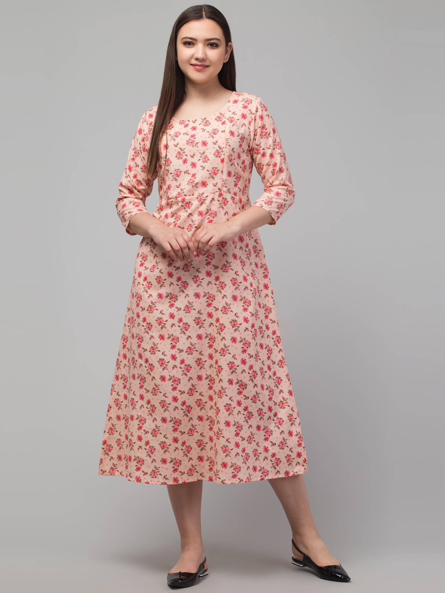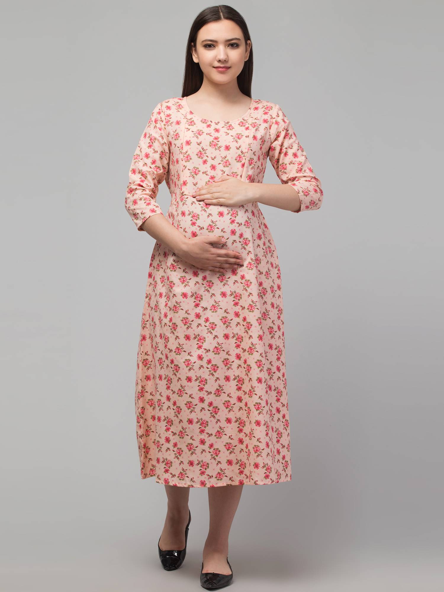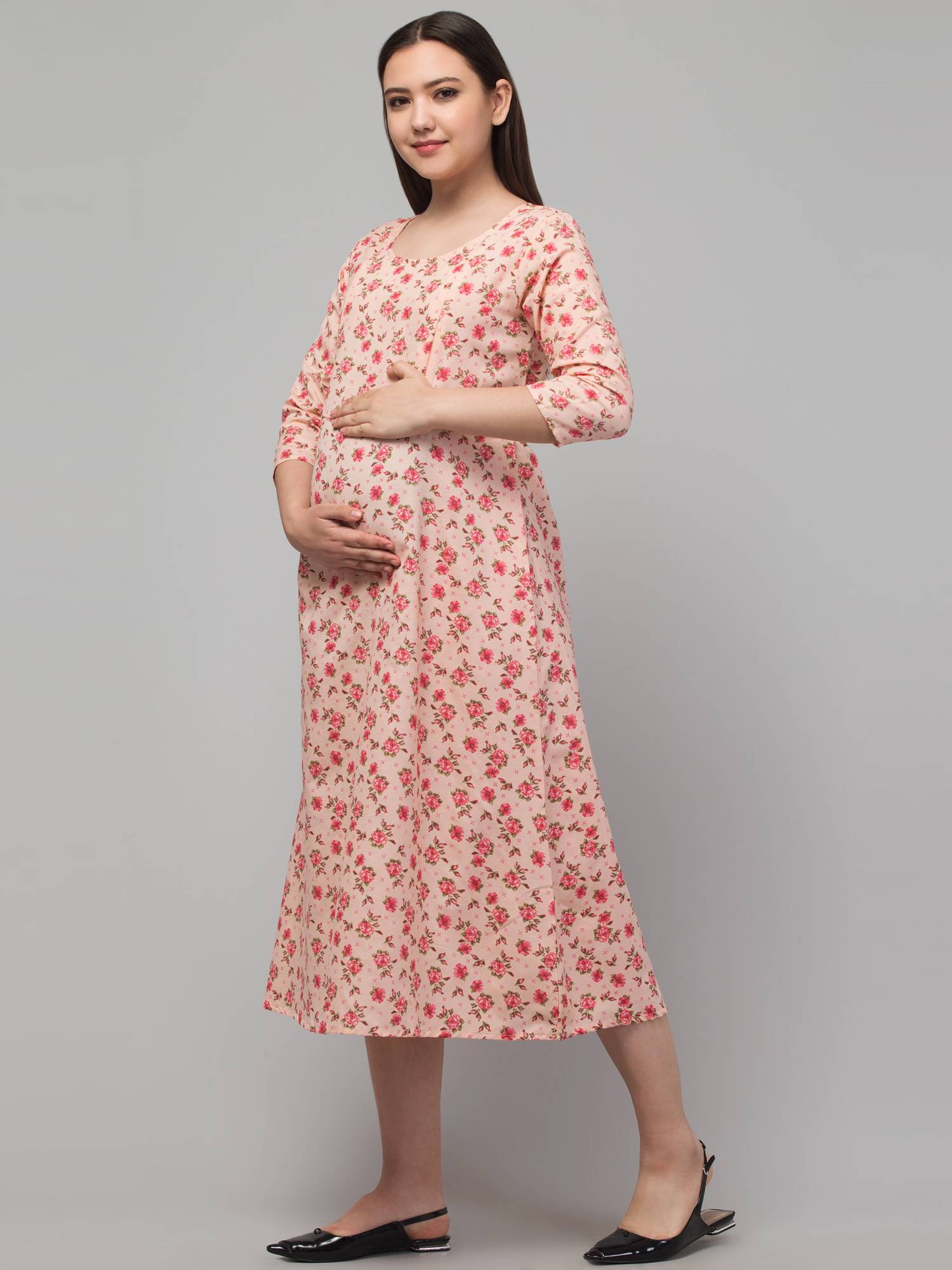 • Made After Reviews & Feedbacks From 162 Indian Mothers || Stitched With Perfection || Easy To Wear Round Neck || 3/4 Sleeves || Hidden Concealed Zipper On Both Sides || Attached Belt For Best Fitting During & Post Pregnancy || Beautiful Prints On Cotton.