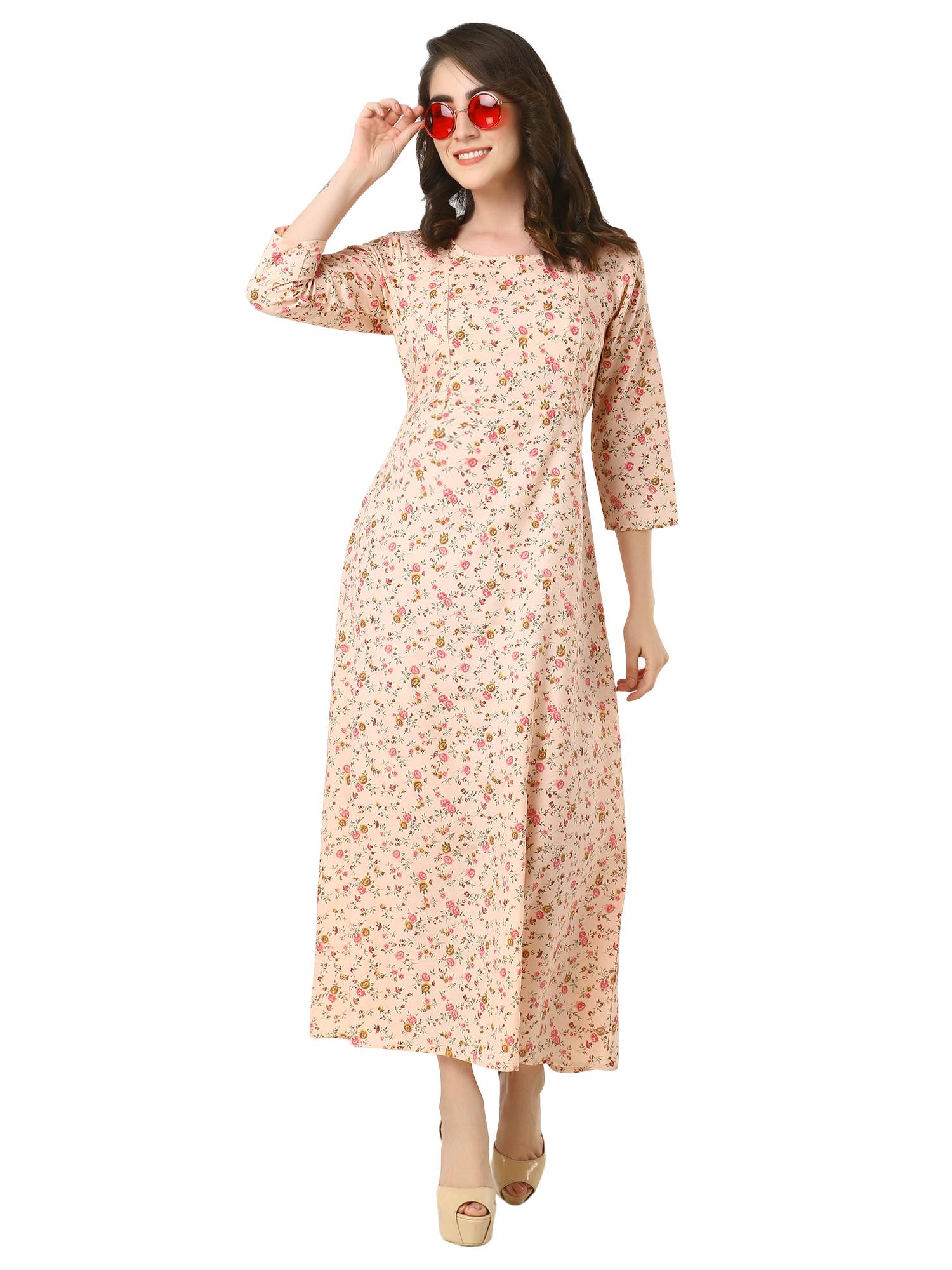 • Made After Reviews & Feedbacks From 162 Indian Mothers || Stitched With Perfection || Easy To Wear Round Neck || 3/4 Sleeves || Hidden Concealed Zipper On Both Sides || Attached Belt For Best Fitting During & Post Pregnancy || Beautiful Prints On Cotton.