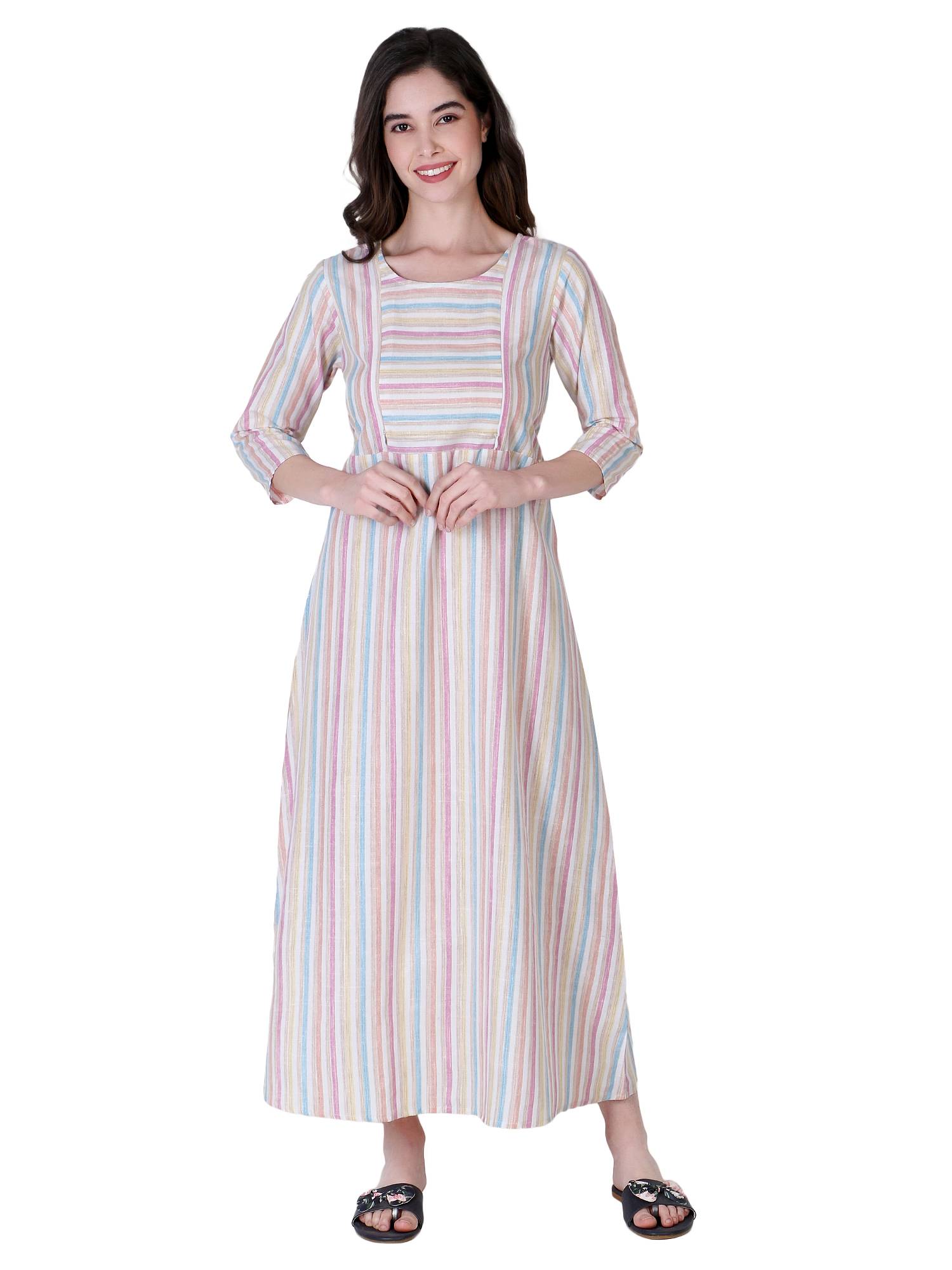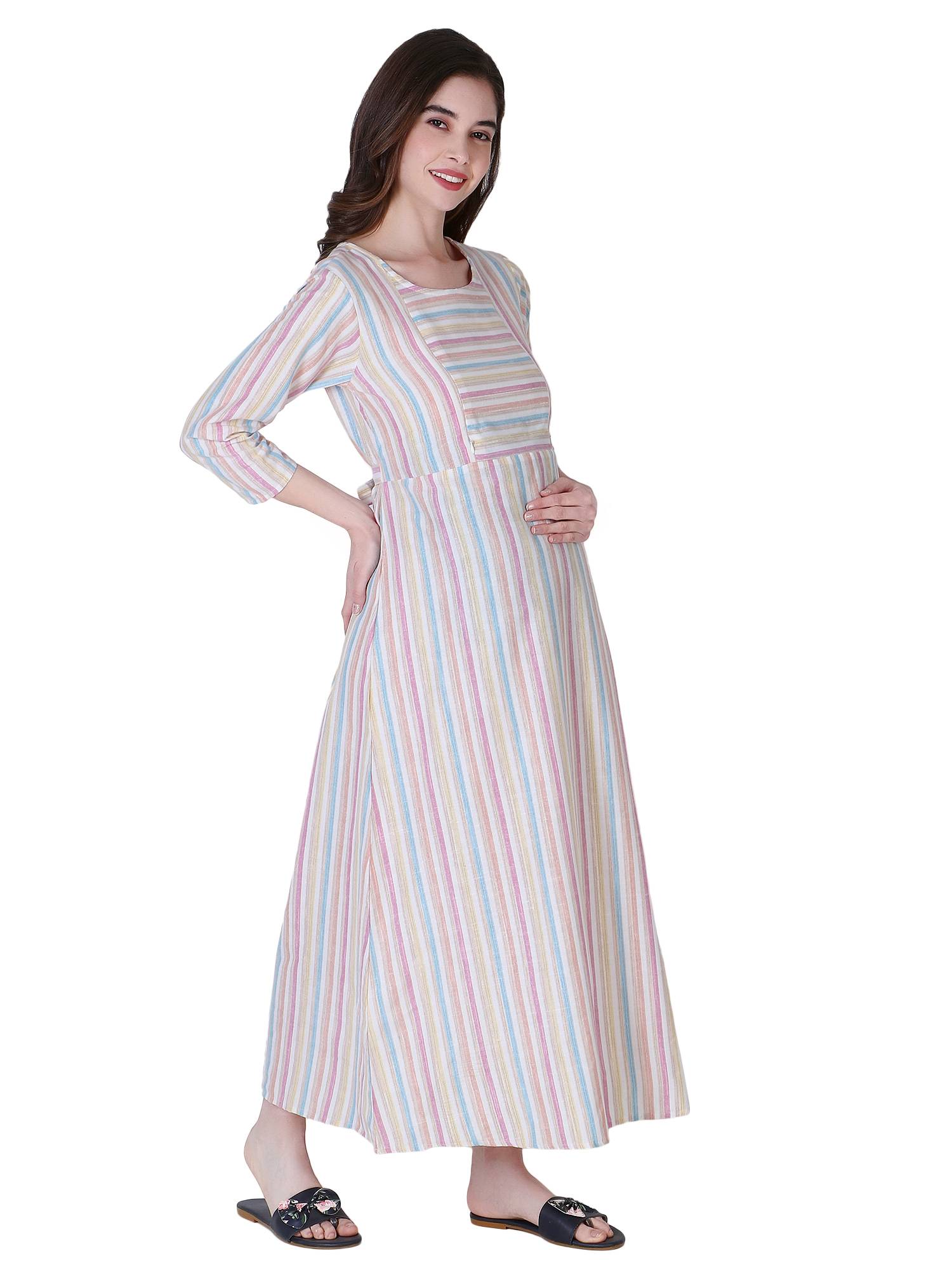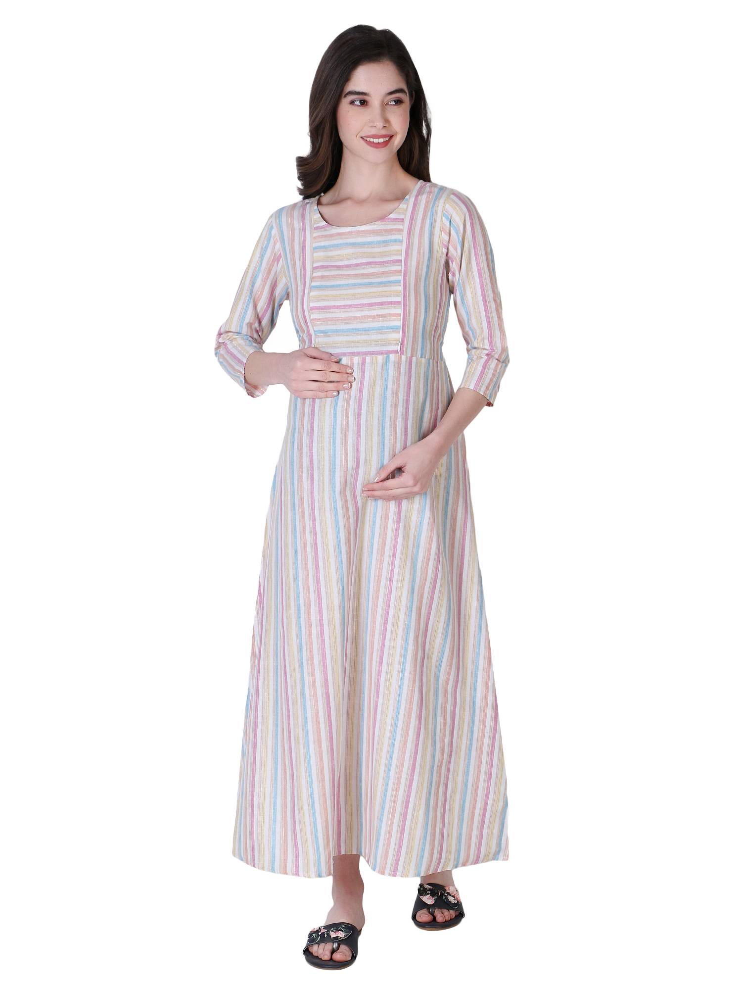 ZUVINO launches latest collection of maternity dresses for women to freshen up your maternity wear wardrobe. These stylish feeding kurtis with zip for women in latest designs are made up of super soft cotton handloom fabrics which are comfortable, durable & breathable to ensure you get the best comfort & fitting at the time when you need it the most. These feeding dresses for women features easy to wear round neck & 9 inch vertical zippers on both sides for easy breast feeding. We have provided an attached belt in this maternity kurti for nursing feeding to adjust proper fitting during pre & post pregnancy period as per your choice. This maternity frocks dress can be paired up with leggings to make it perfect kurta set for pregnant women. Our maternity long dress is best choice as maternity gowns for photoshoots or excellent gift for baby showers to new mothers. Made in such a way with comfortable fabrics, this party wear maternity dress can easily be used as feeding night dress also. We at ZUVINO understand the needs of feeding mothers and always strive to bring you only the best. All our western wear pregnancy dresses are made after trials and feedbacks of 162 Indian mothers so our maternity wear collection will be your best companion in summers for all day comfort or in any other season.