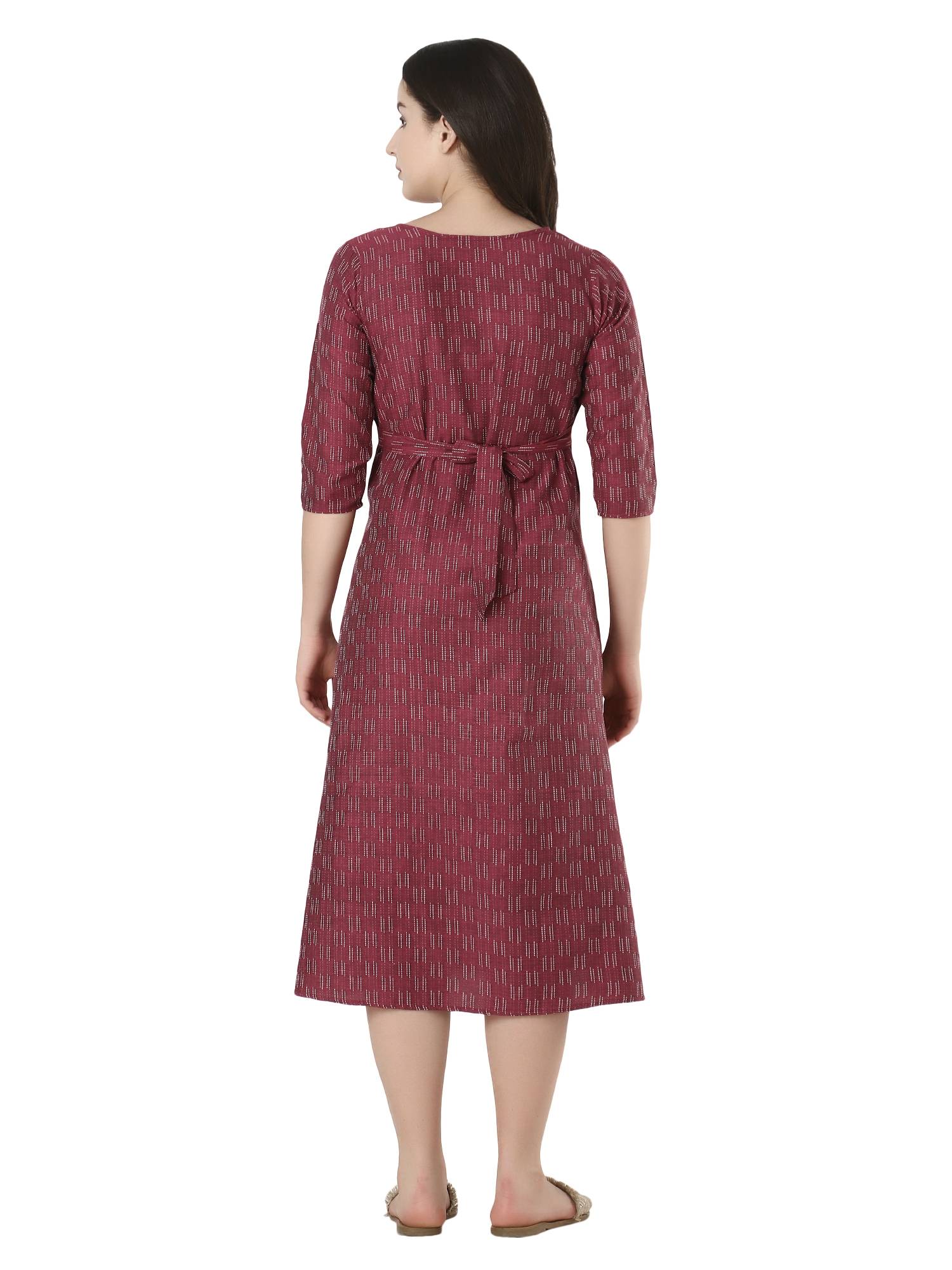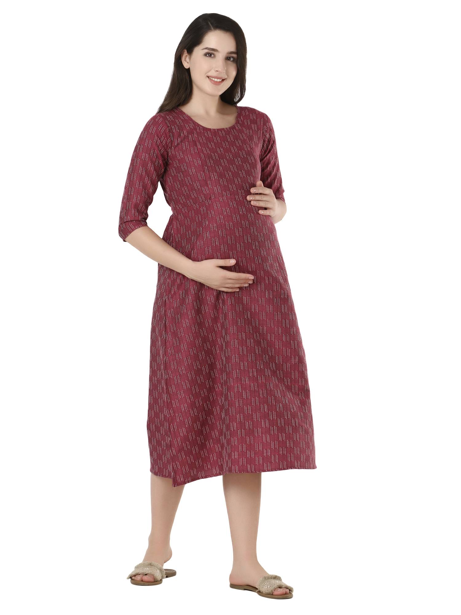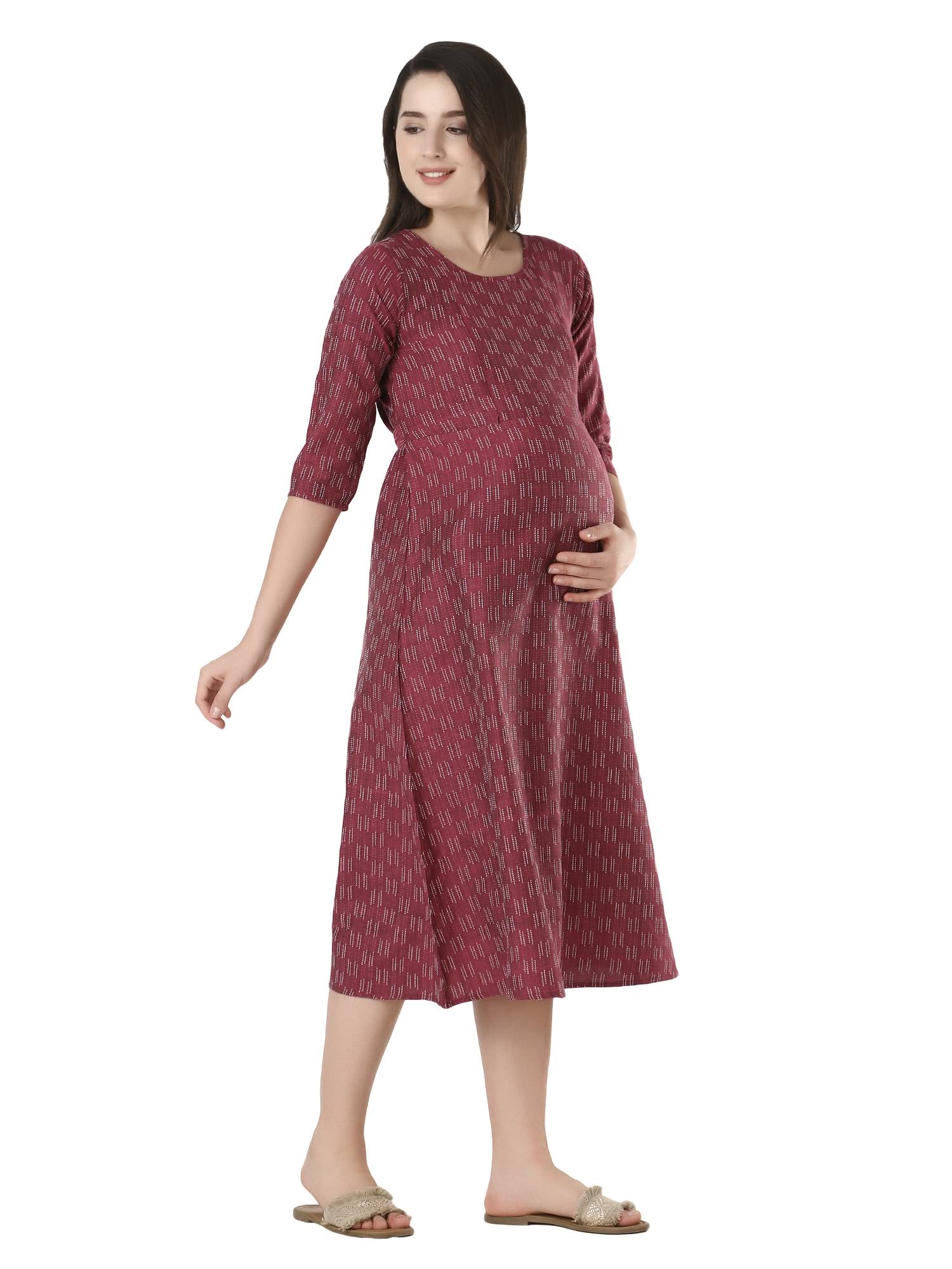 Cotton Maternity Feeding Dress With Zippers For Nursing. (Wine)