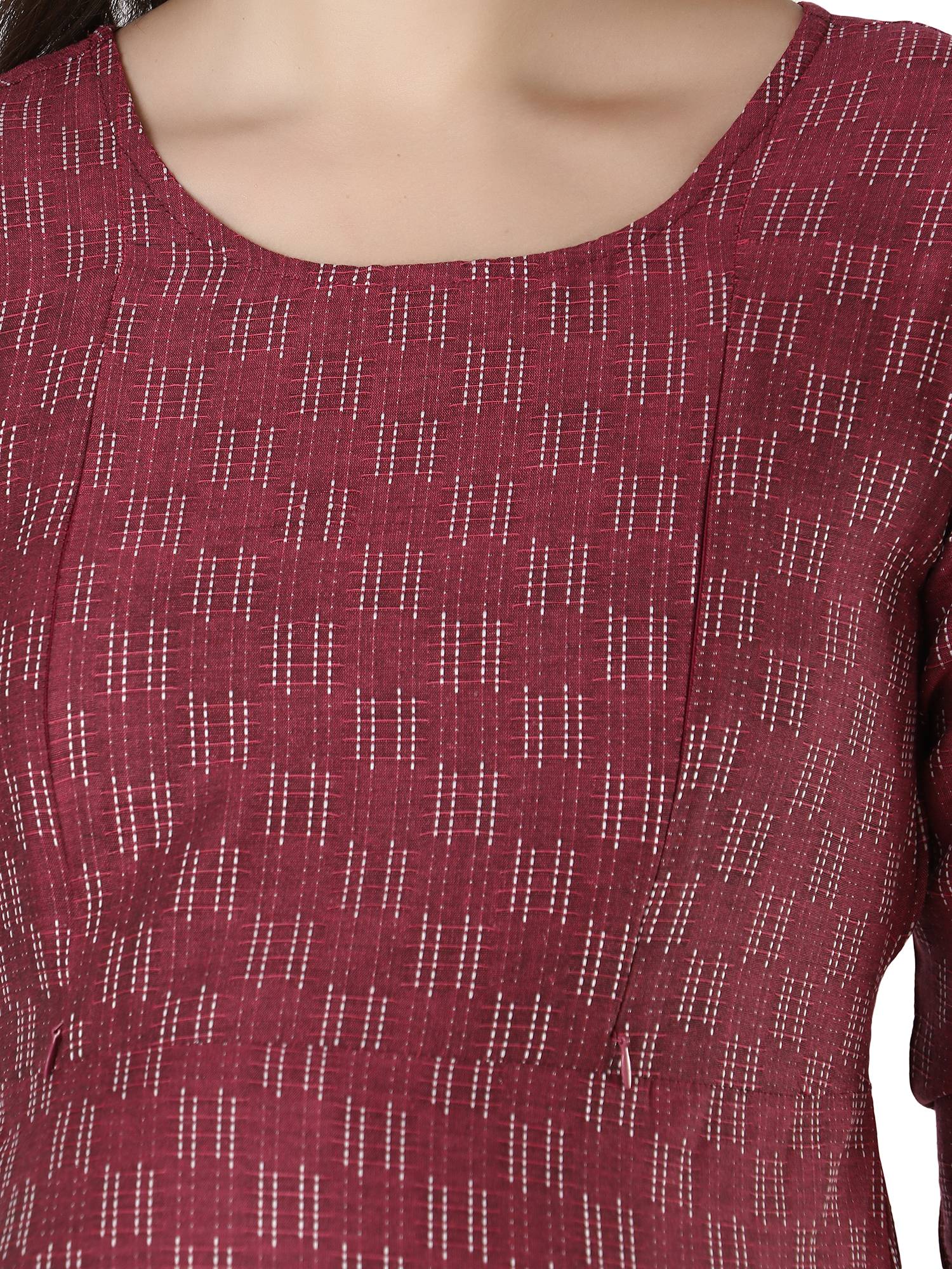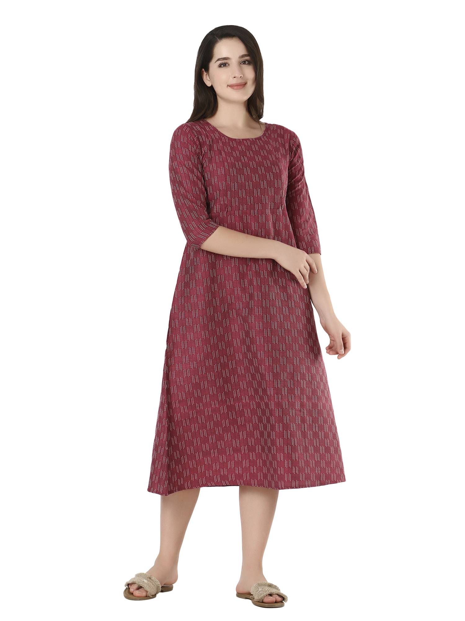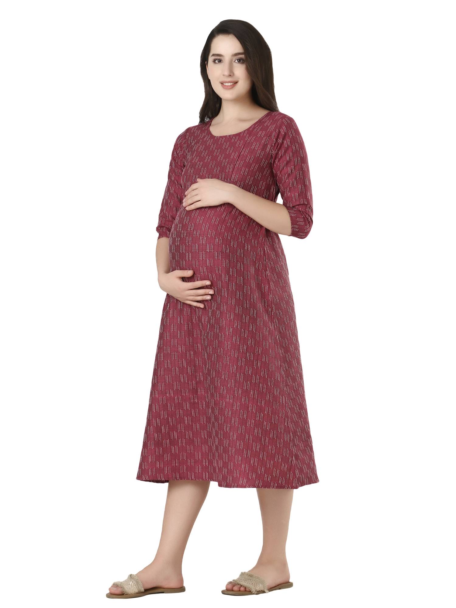 Cotton Maternity Feeding Dress With Zippers For Nursing. (Wine)