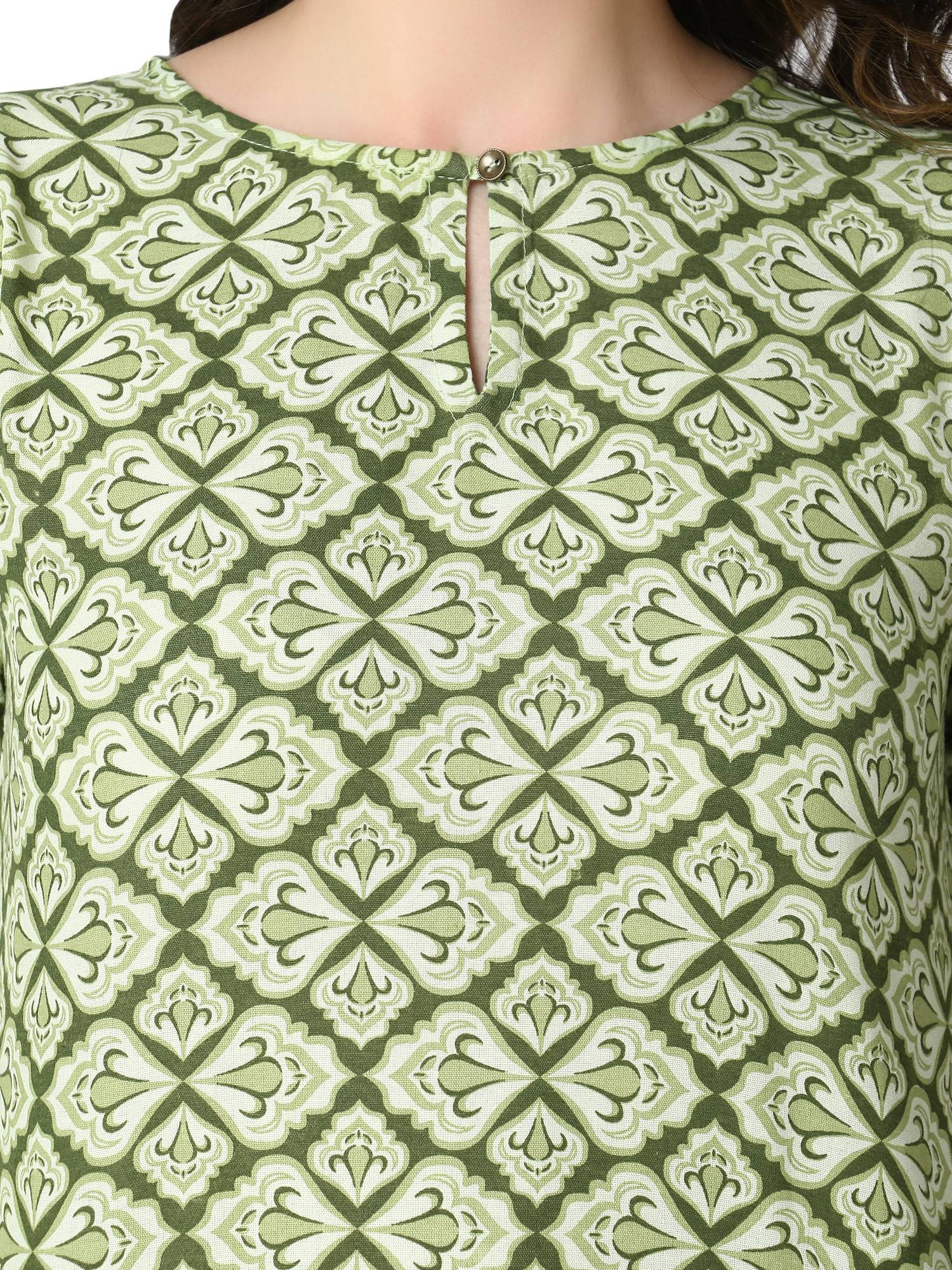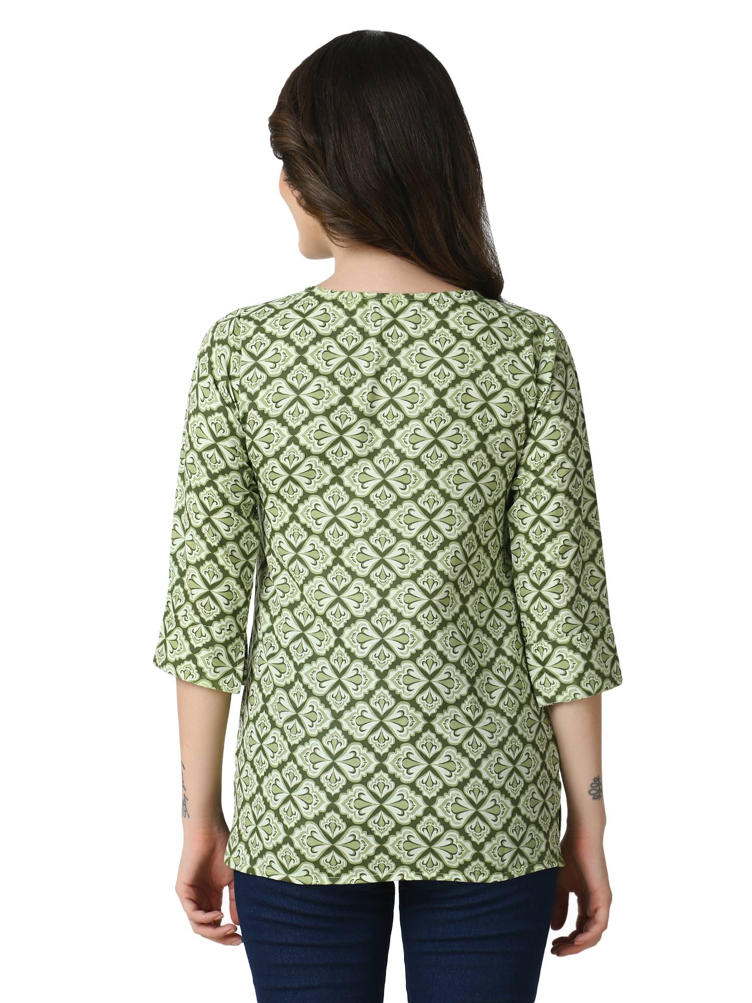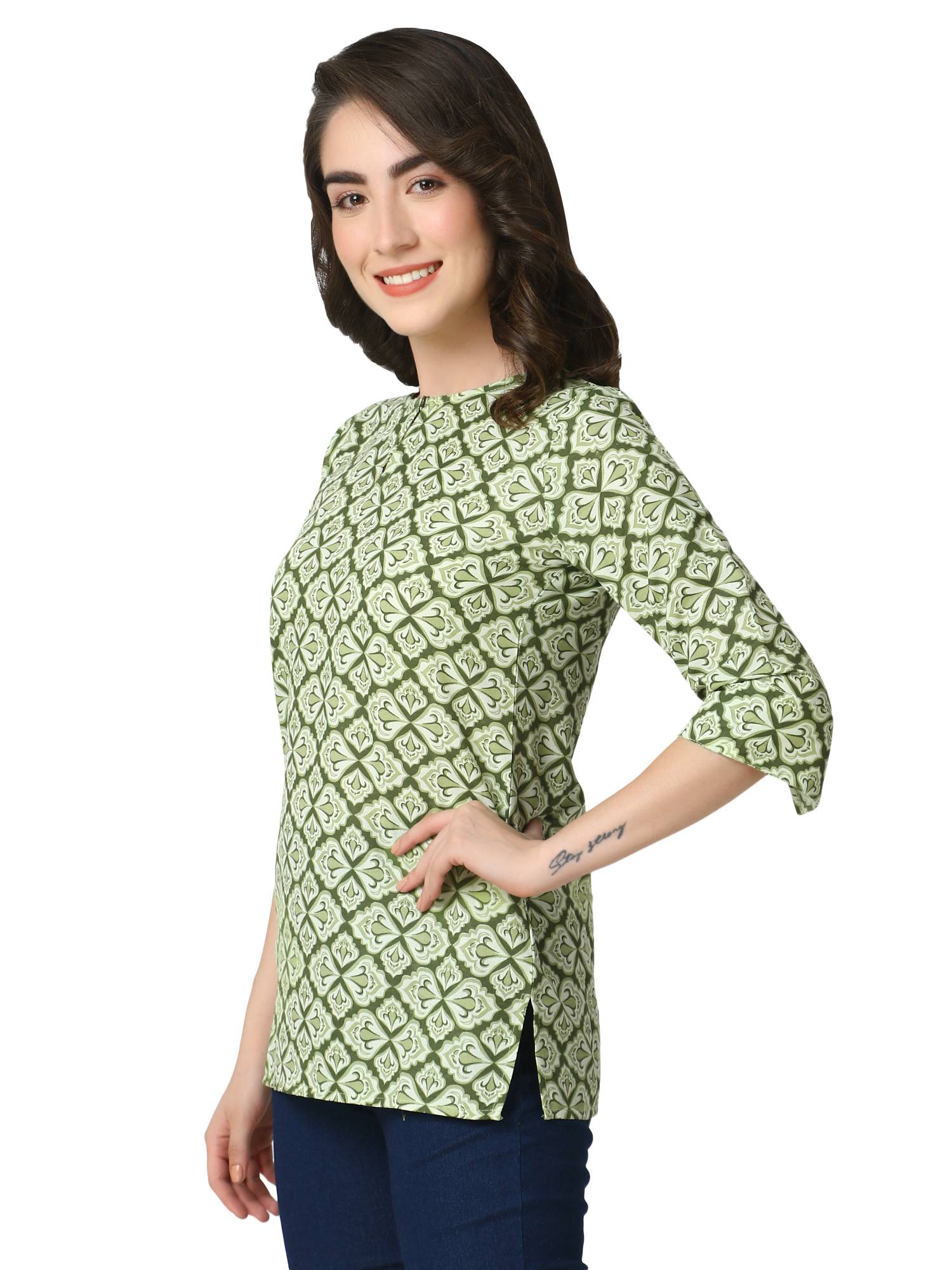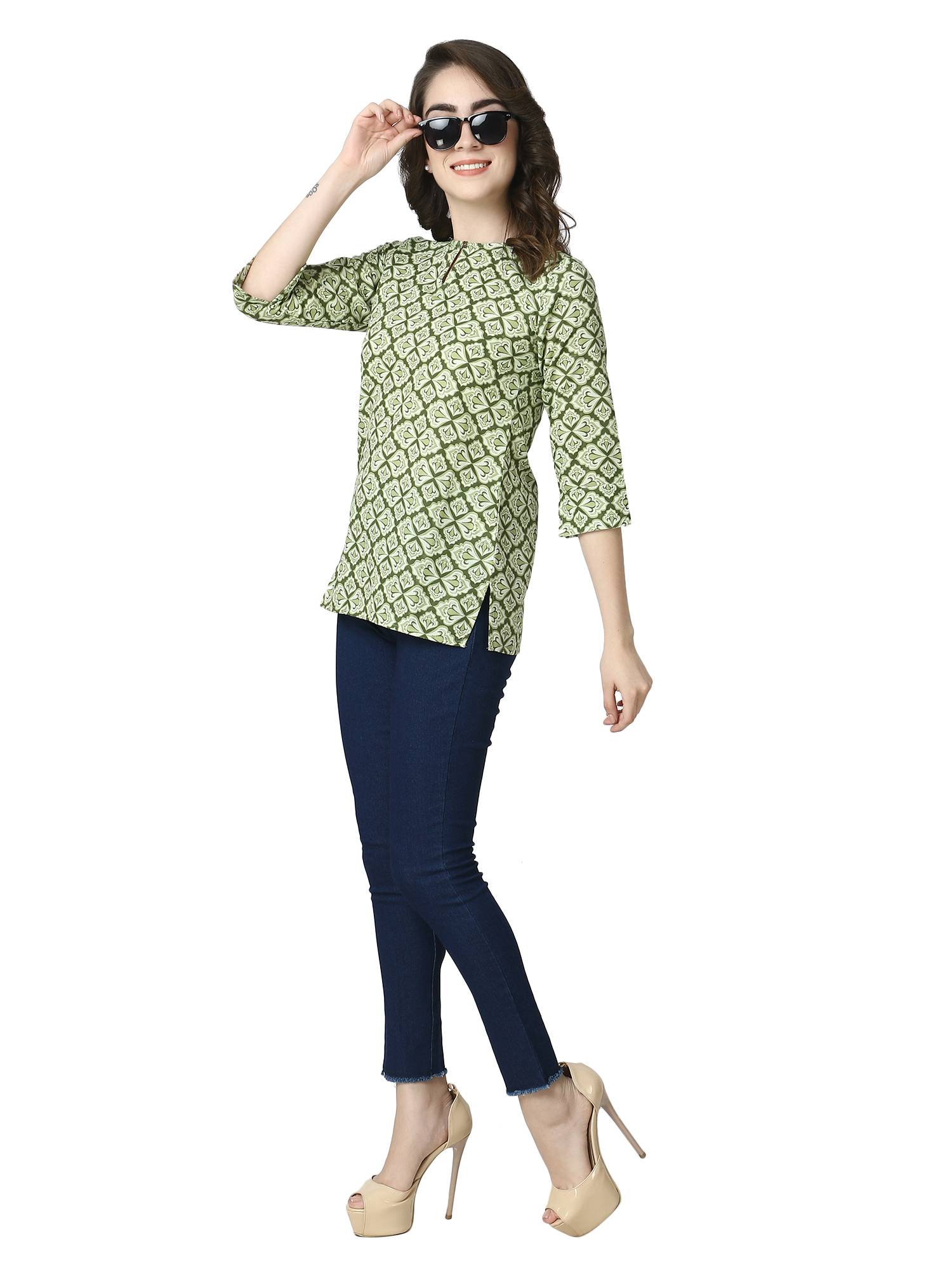 Cotton Short Printed Kurti For Jeans. (Green)