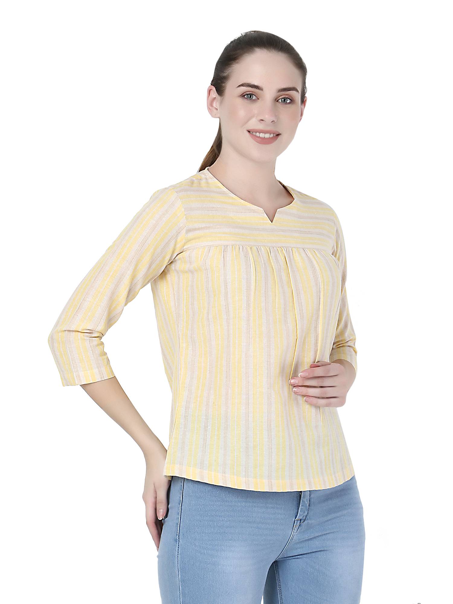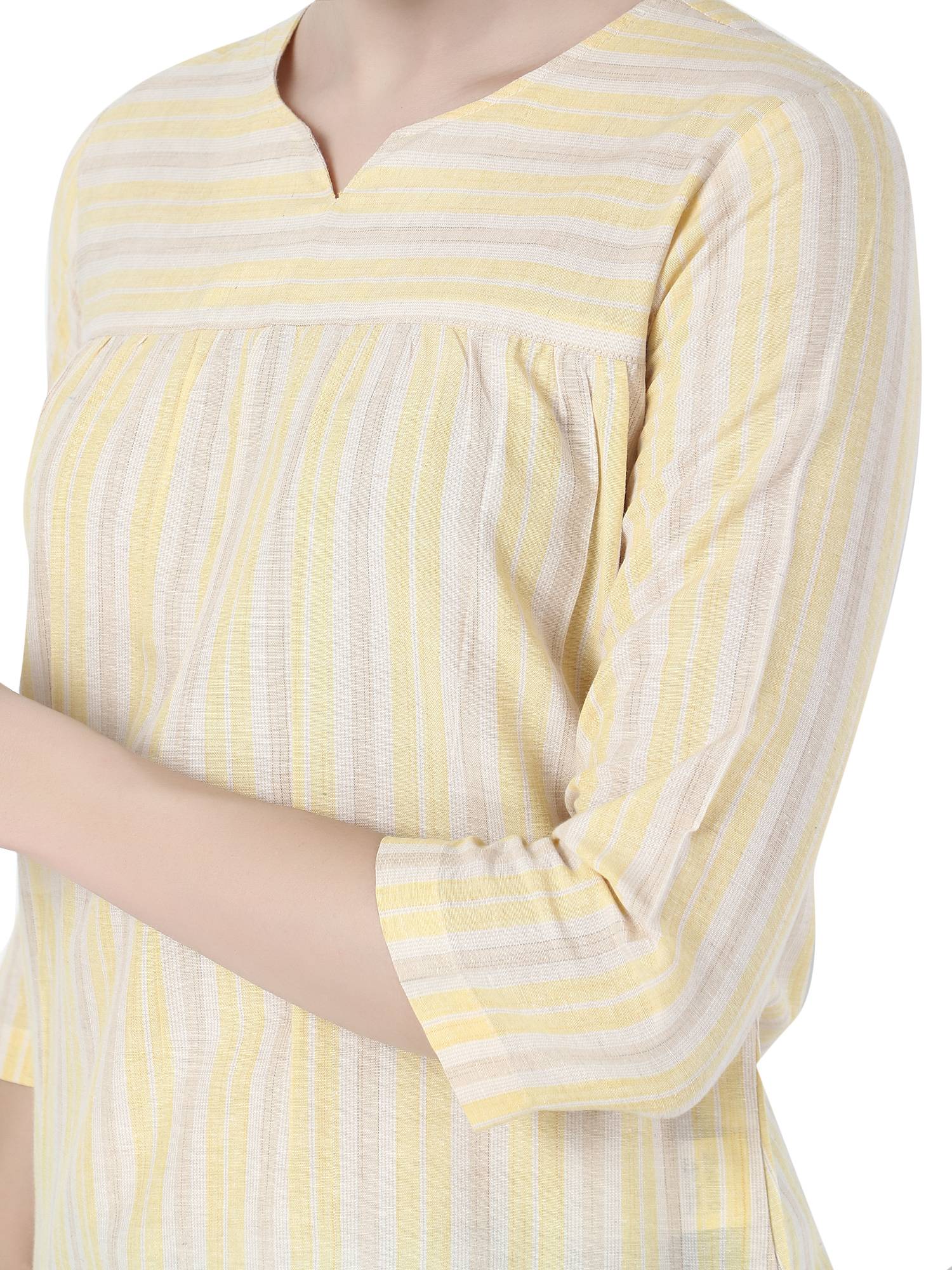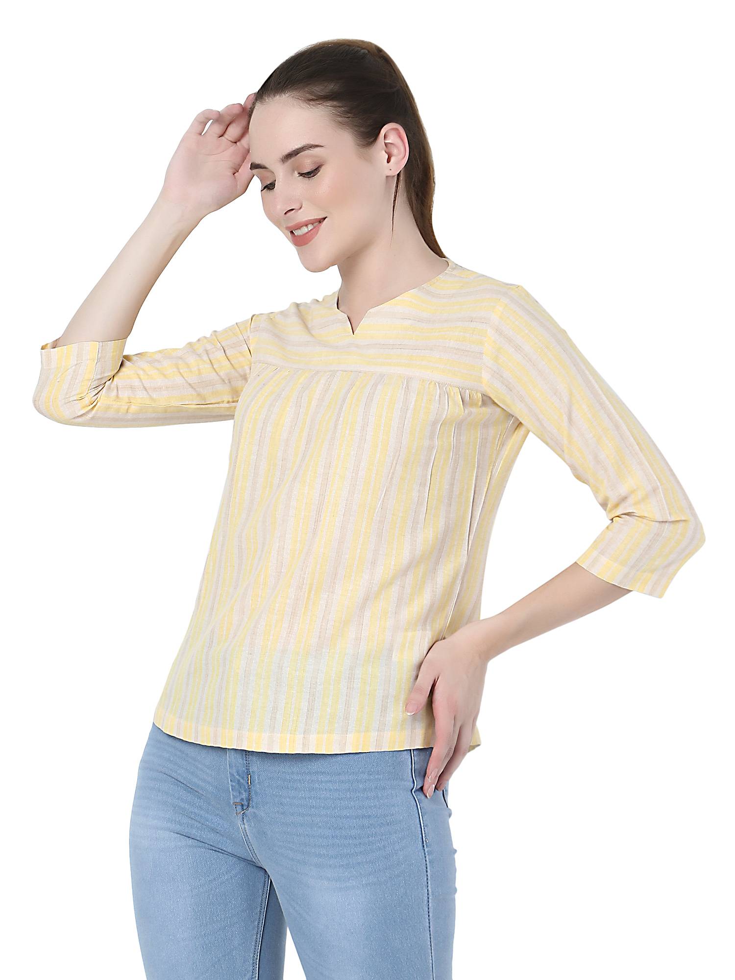 Cotton Striped Basic Top. (Lemon)