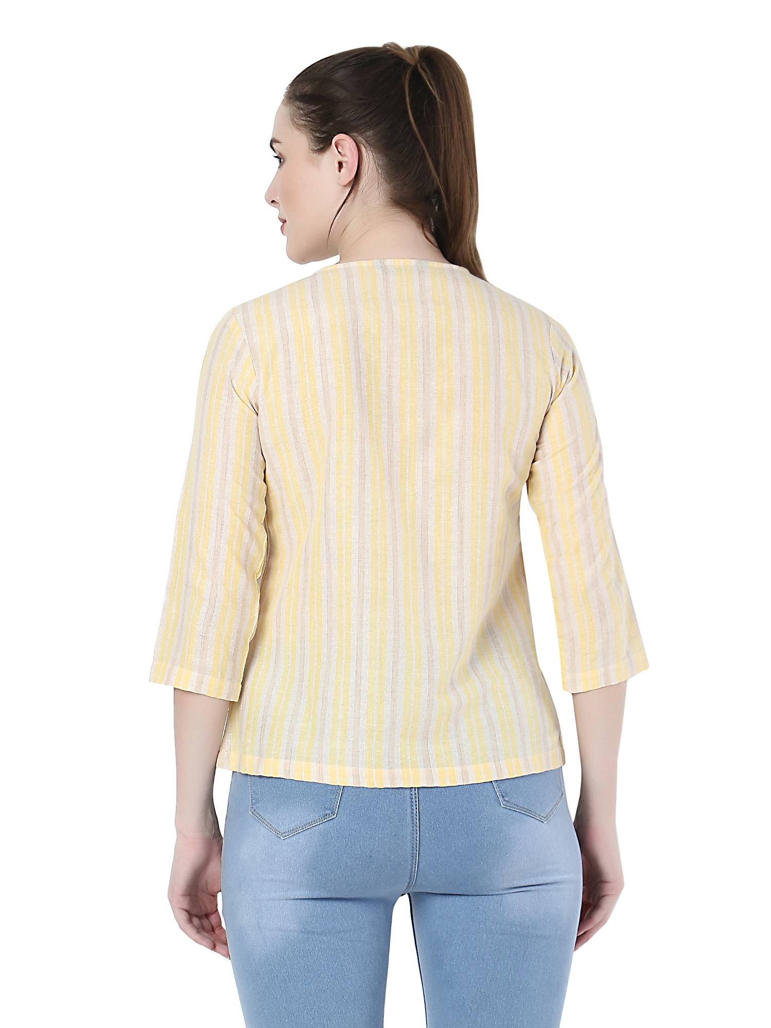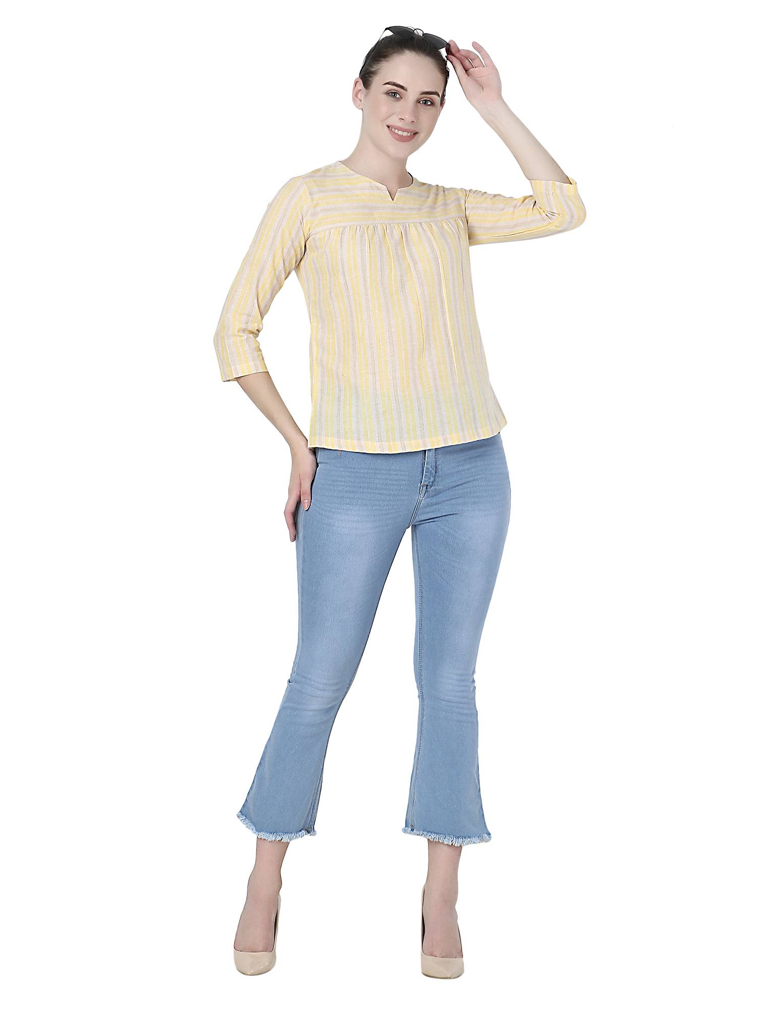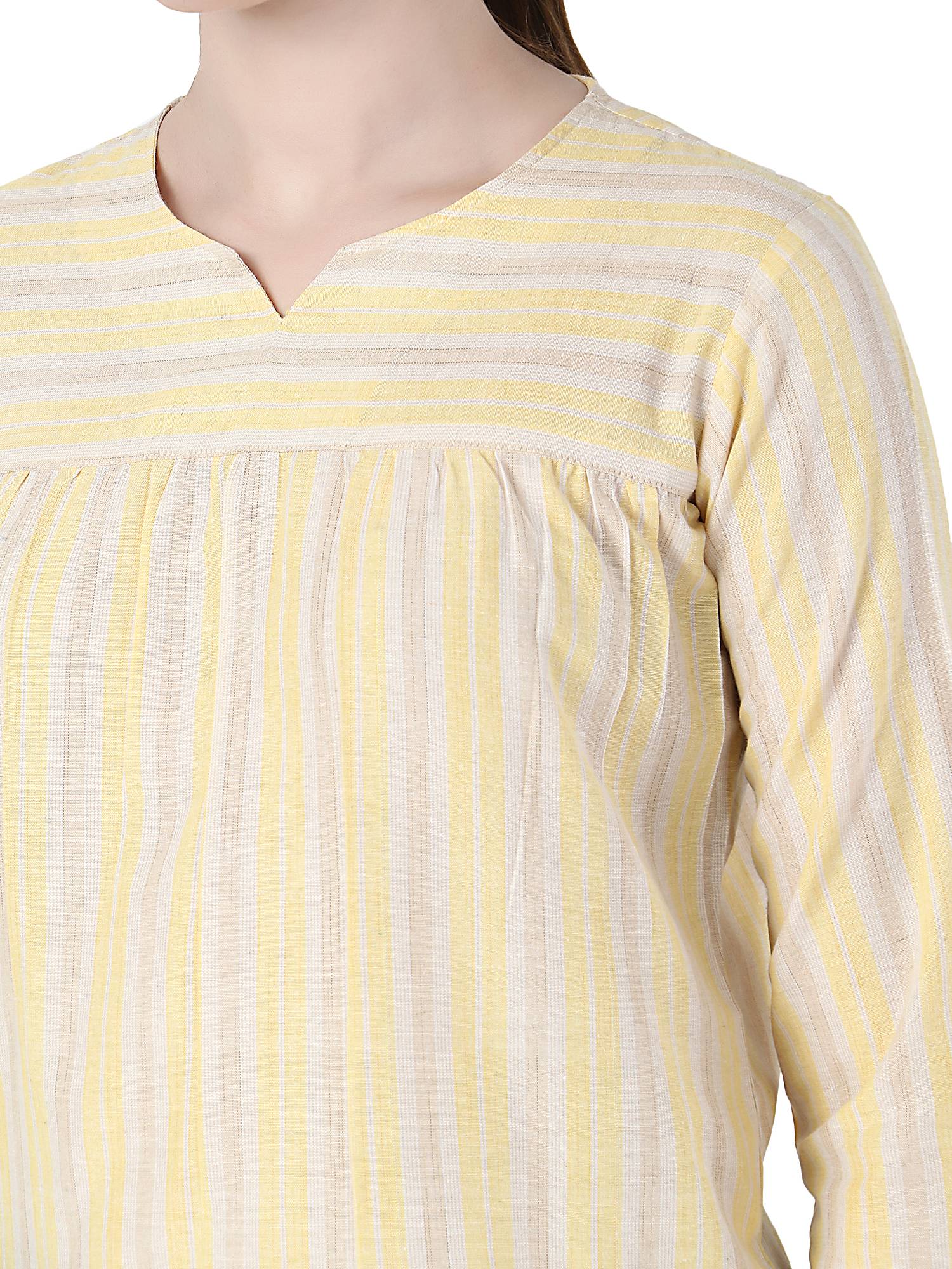 Cotton Striped Basic Top. (Lemon)