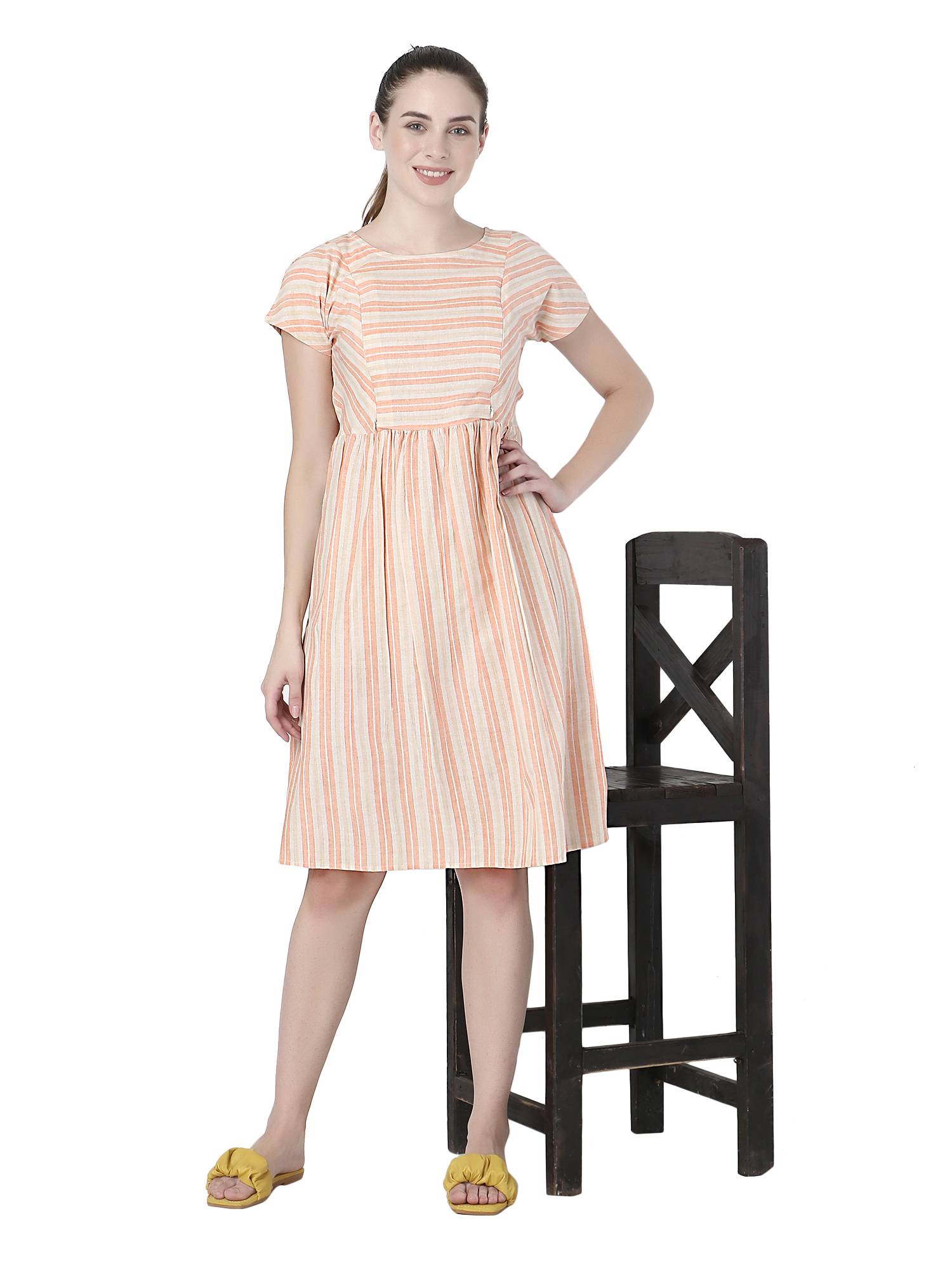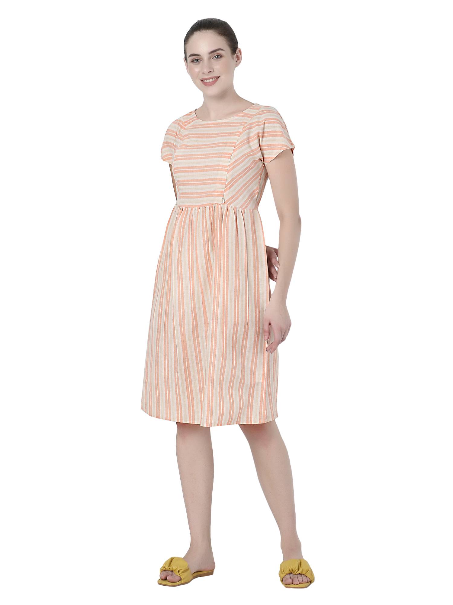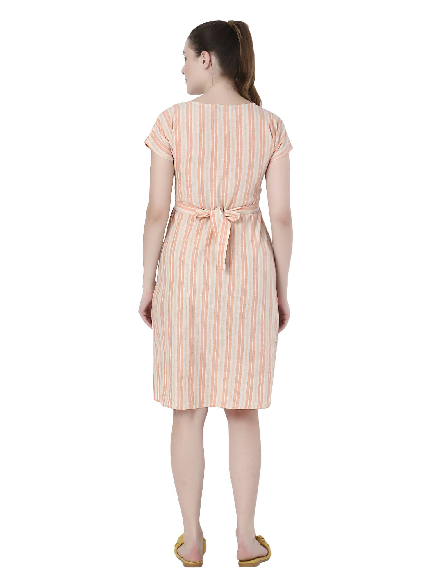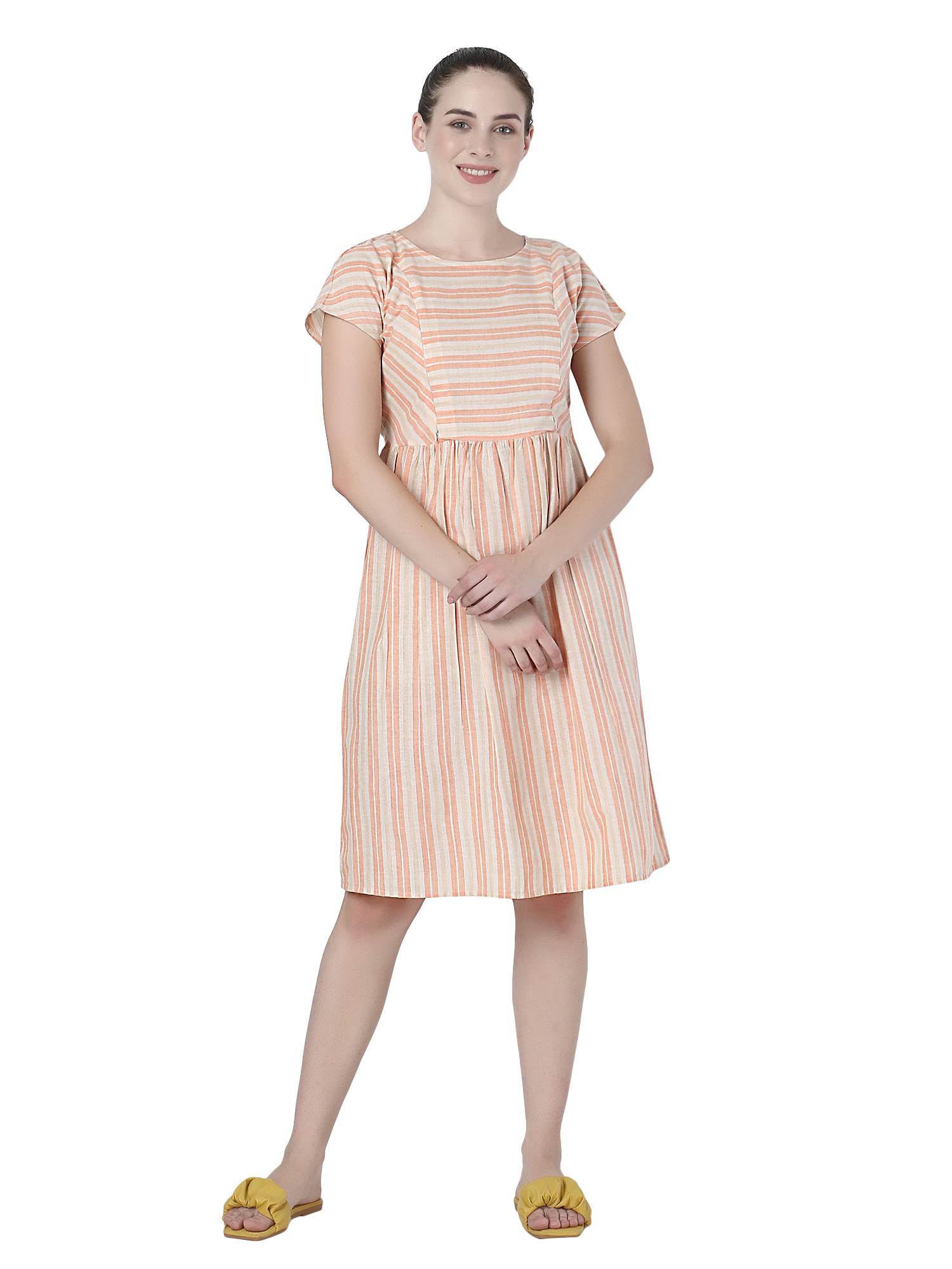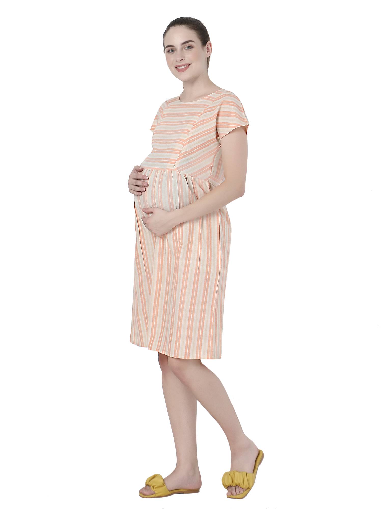 Presenting exclusive collection of maternity dresses for women from the house of ZUVINO. These feeding kurtis for women are made up of breathable, soft and skin friendly fabrics which ensures your comfort all day long. Who said that feeding dresses for women needs to be boring? These maternity kurti for women are stylish, charming yet elegant and decent. These pregnancy dresses are stitched with perfection on beautiful striped fabrics in beautiful patterns and styles. Feeding tops for mothers with zip are most essential part for feeding baby. That's why these western wear nursing dresses for women features 9 inch hidden concealed vertical zipper that allows easy breast feeding access as needed. Feeding kurti and pregnant women dress should fit properly during and post pregnancy period. For the same reason we have added attached fabric belt in these nursing tops which you can adjust as per your need and comfort. Wait no more to add these feeding kurtis in latest designs to your mom to be maternity dress collection. Made up of cotton fabrics these below knee length feeding dresses will be your best addition as you can use them as maternity night dress for feeding as well. Pleats around tummy area makes these party wear maternity dresses easily hide your baby bump. If you are looking for maternity frocks or maternity gowns for photoshoot, then your search ends here. Perfect gift for new mothers, these baby shower gowns are ideal for baby shower or surprise gift to expecting moms. All our maternity wear nursing clothes are made after feedbacks and reviews of 162 Indian mothers which ensures you get only the best. We work towards excellence to be perfect & complete - Just like your love for your baby. Style these maternity kurtis with leggings to make kurta set for pregnant women. Be it office maternity wear or quick casual outing, this feeding dress for baby will style as per your wish. Available in multiple colours & plus sizes XXL 3XL.