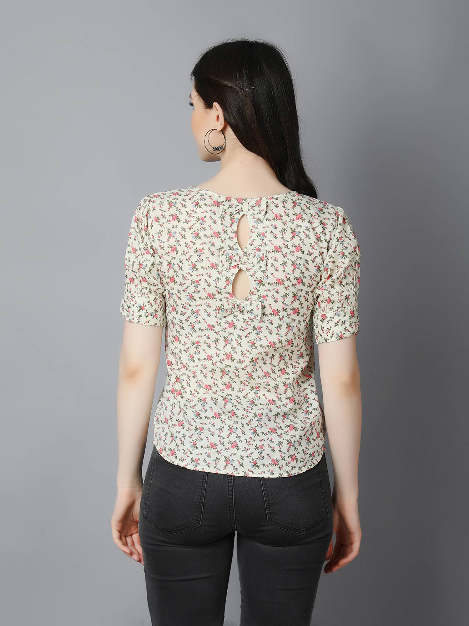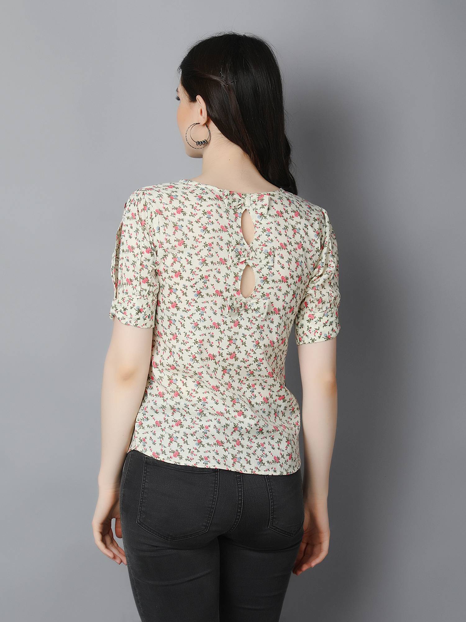 Cotton Stylish Top With Back Bow Details. (Cream)