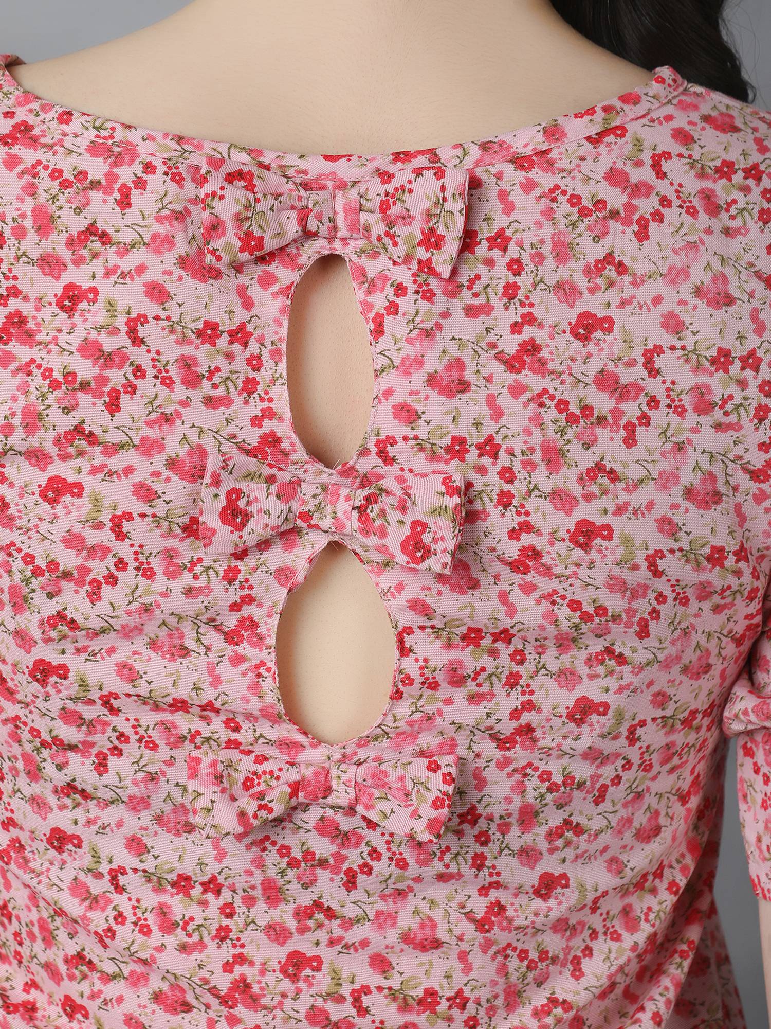 Cotton Stylish Top With Back Bow Details. (Pink)