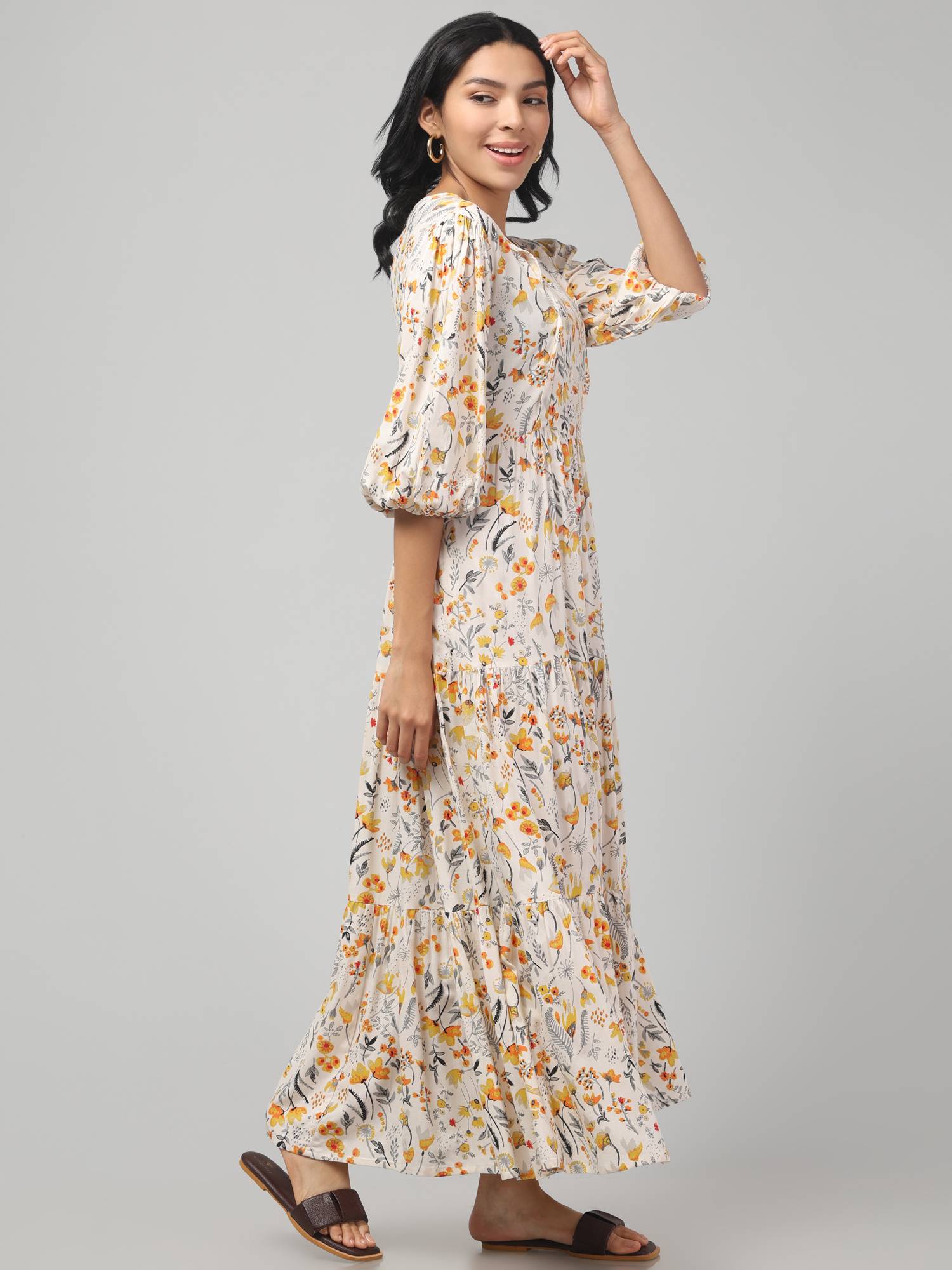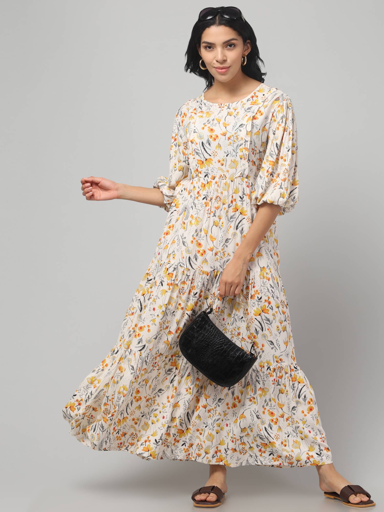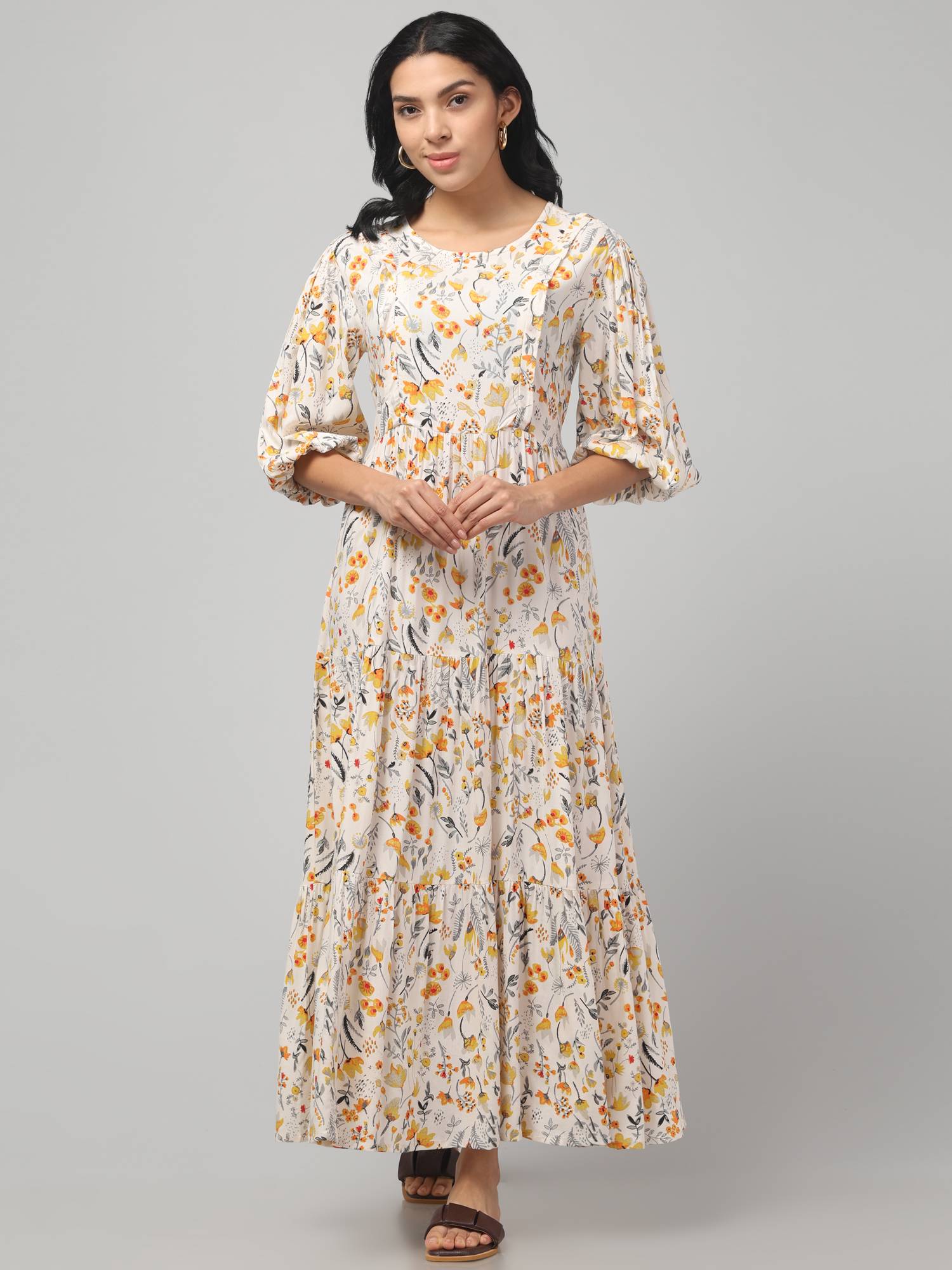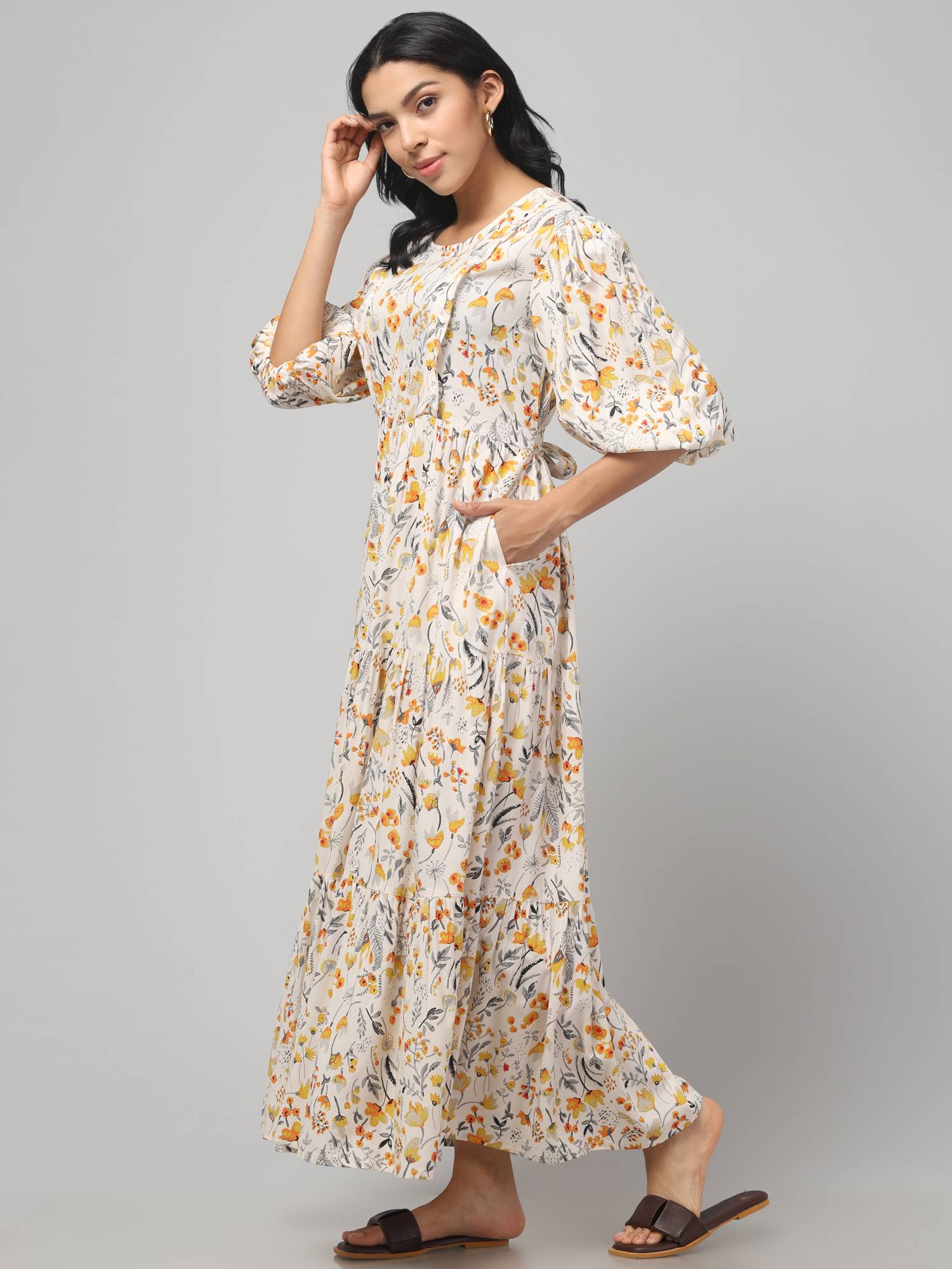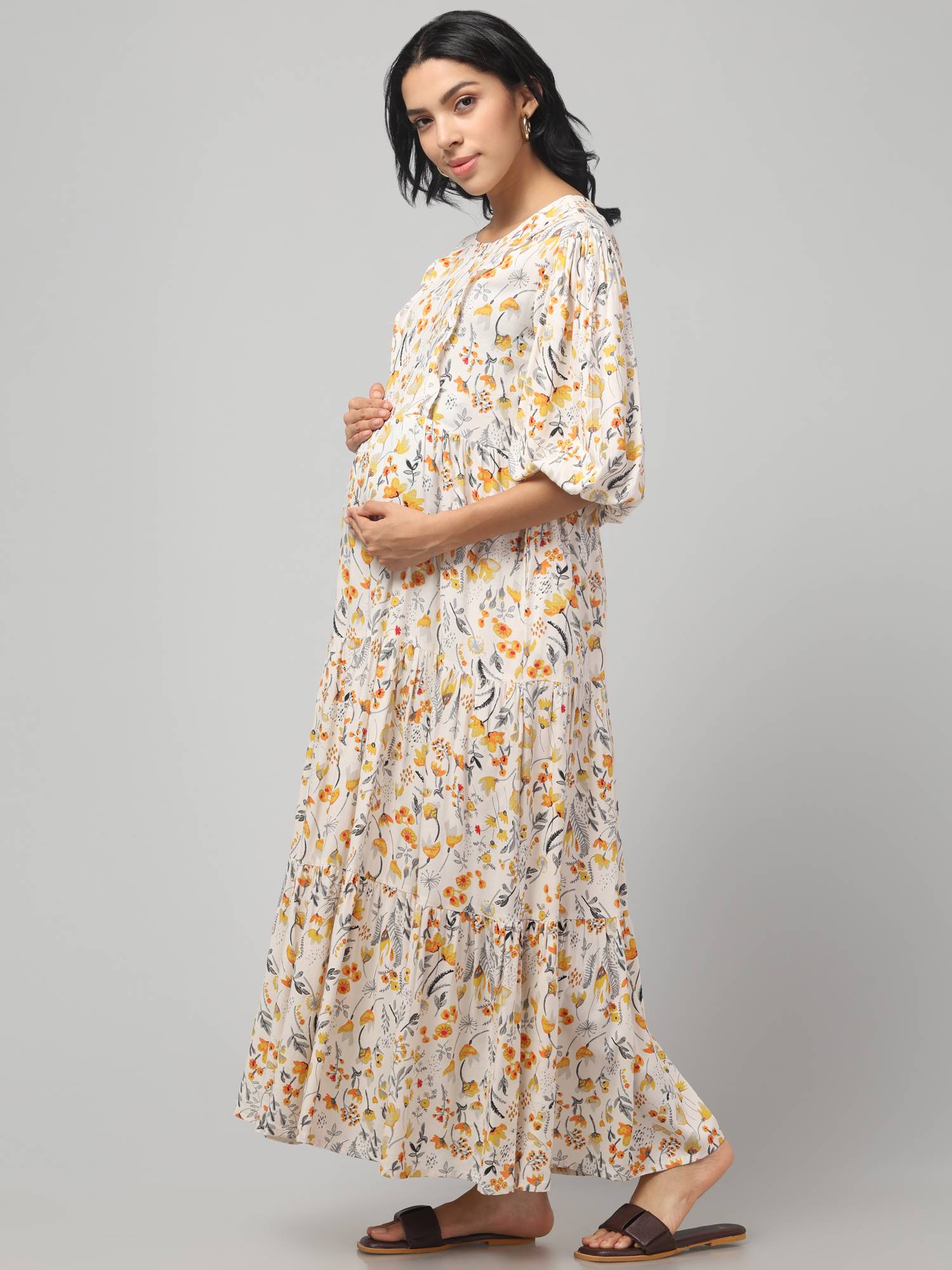 Maternity Feeding Dress With Balloon Sleeves. (Cream)