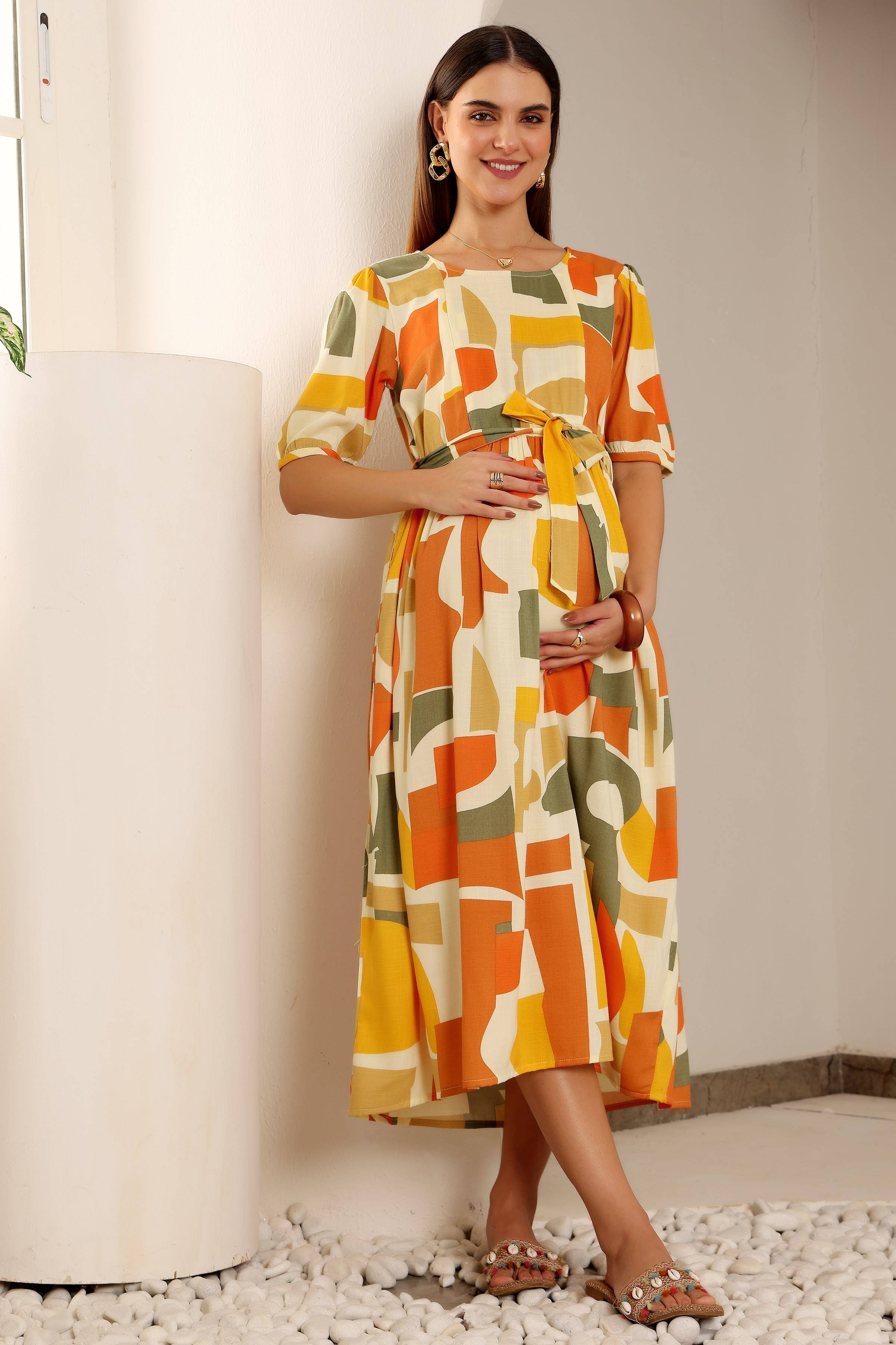 • Premium Maternity Clothing || Designer Maternity Wear || Flattering Stylish Pattern || Beautiful Printed Designs || Statement Puffed Sleeves || Easy To Use During Pregnancy Also.