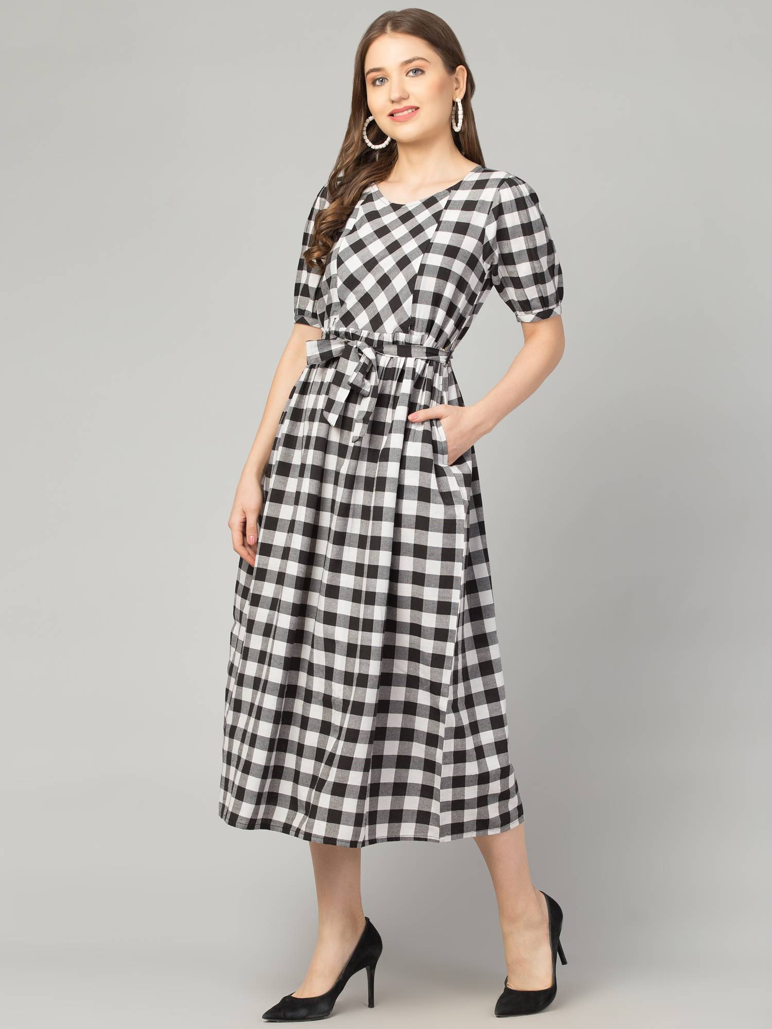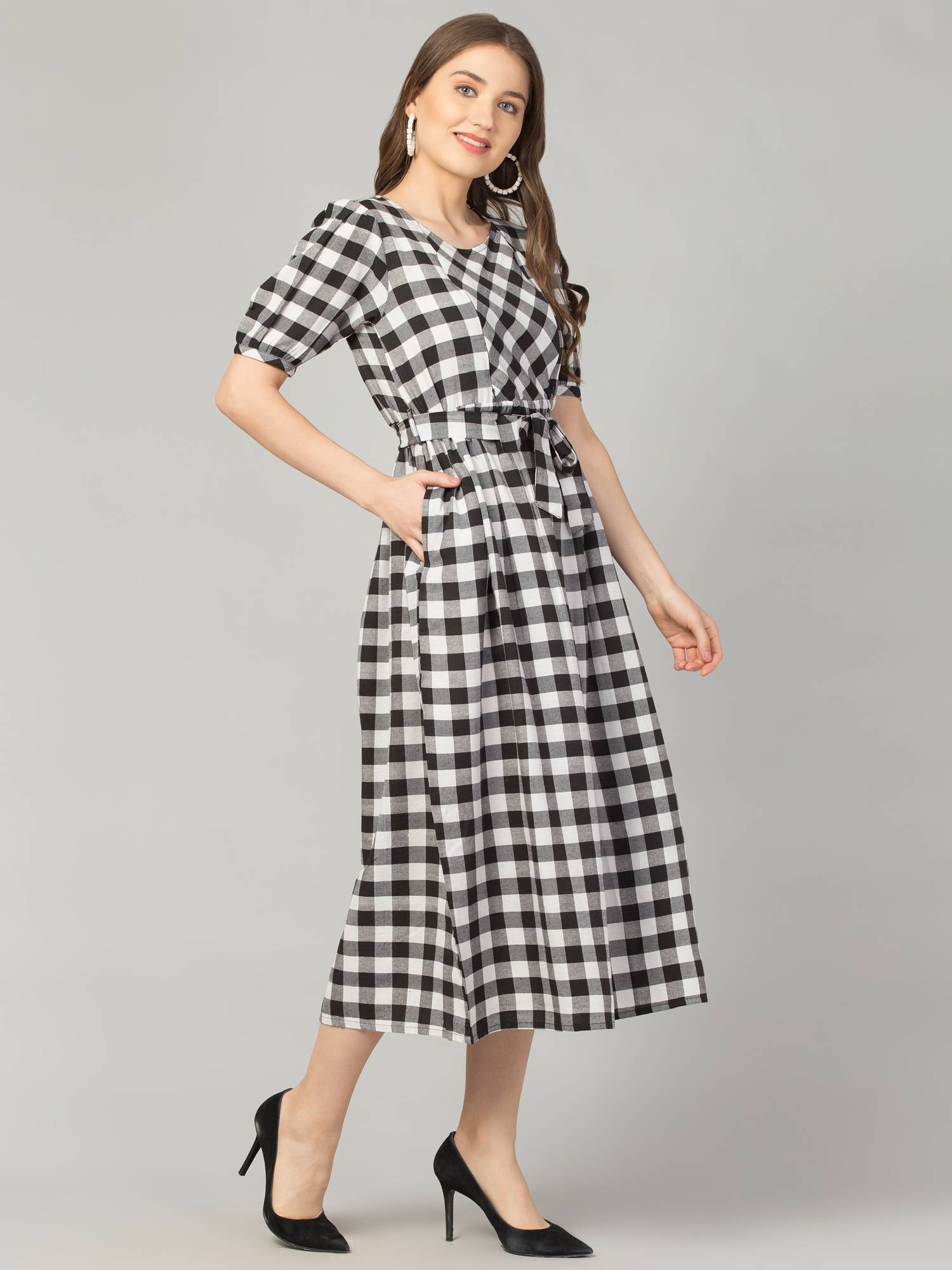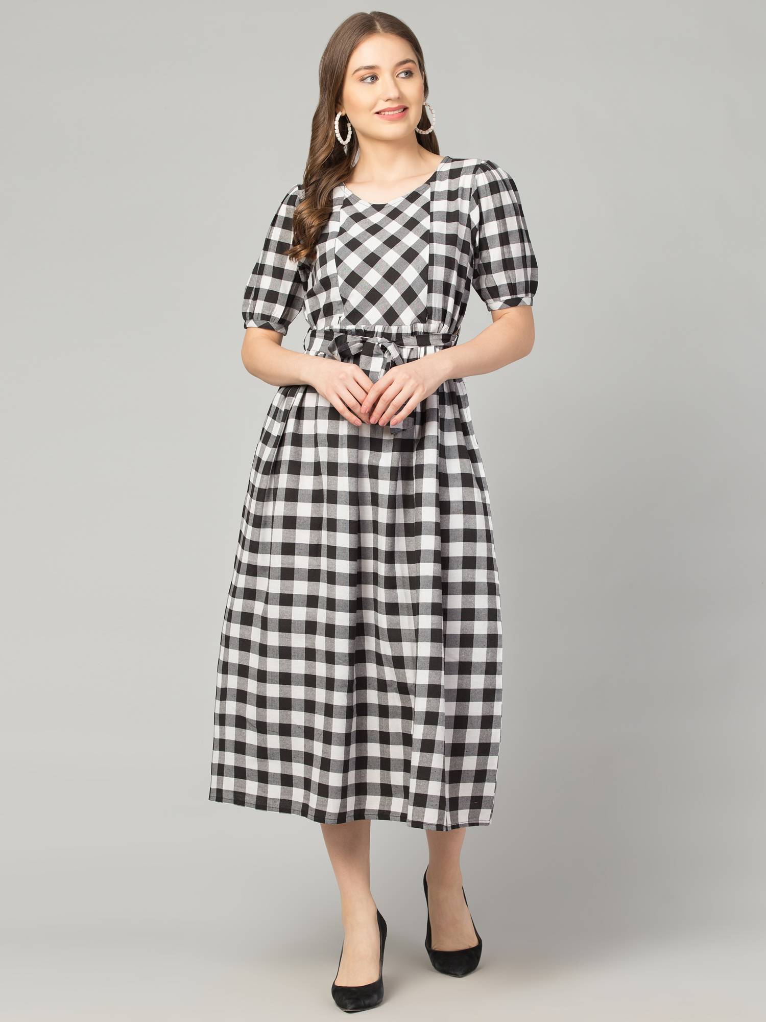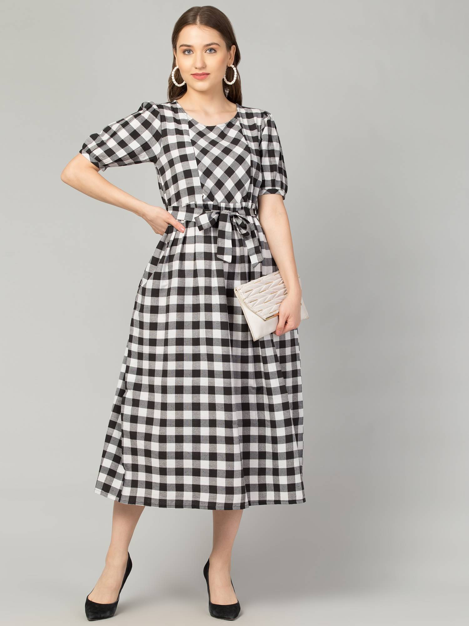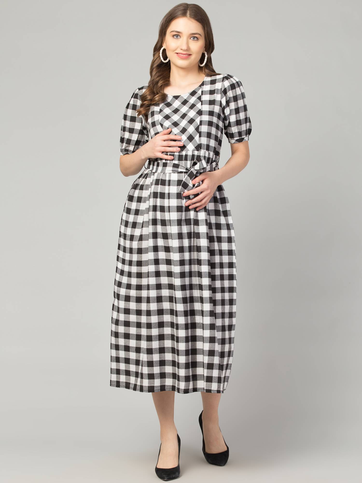 Maternity Feeding Dress With Zippers For Easy Nursing. (Black-White)