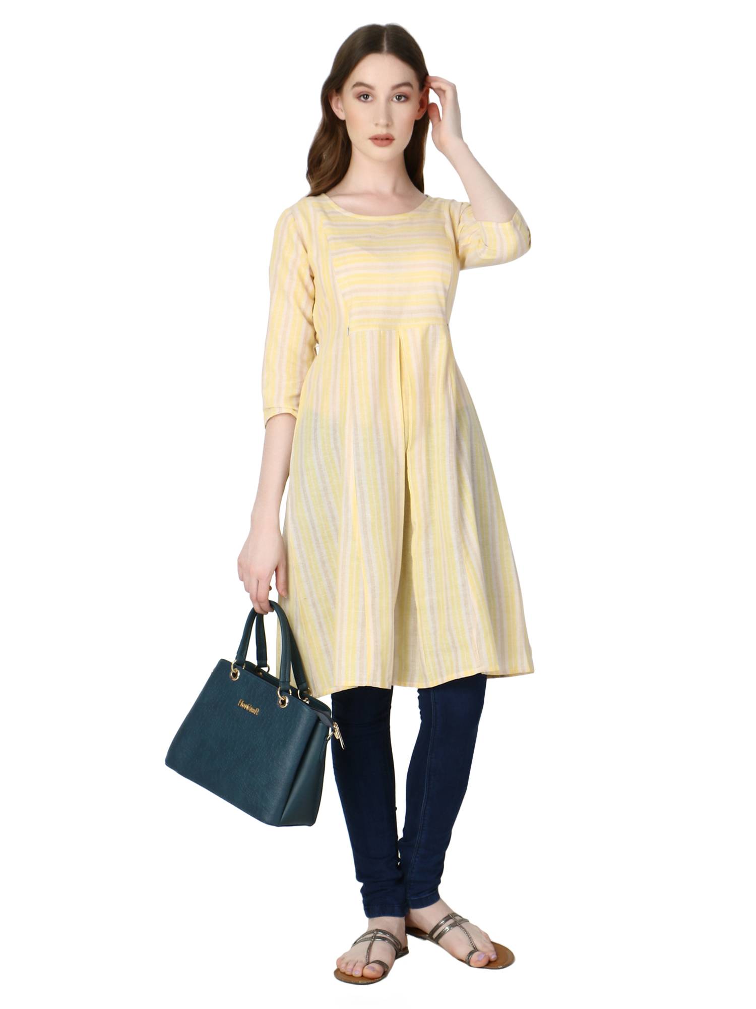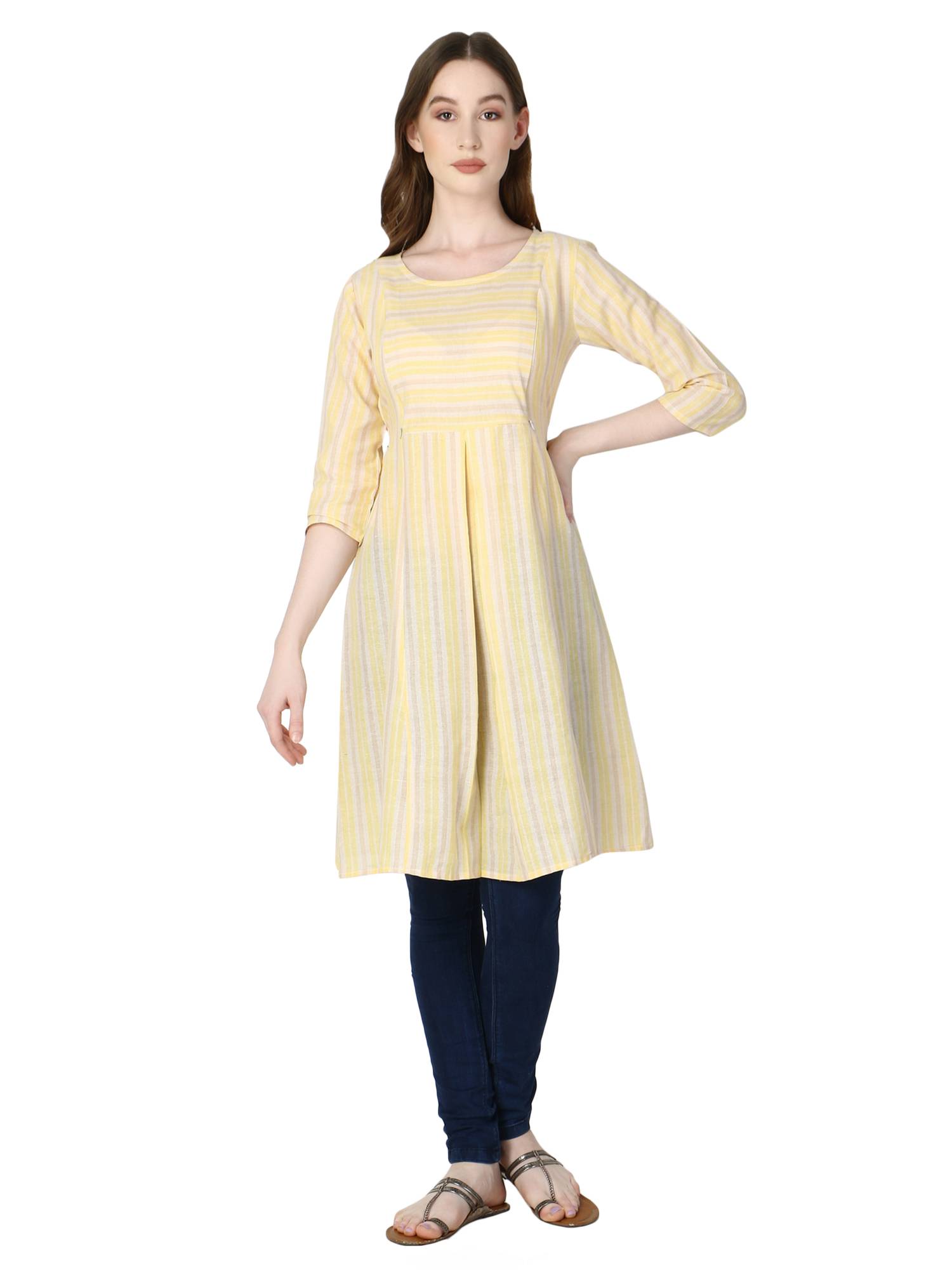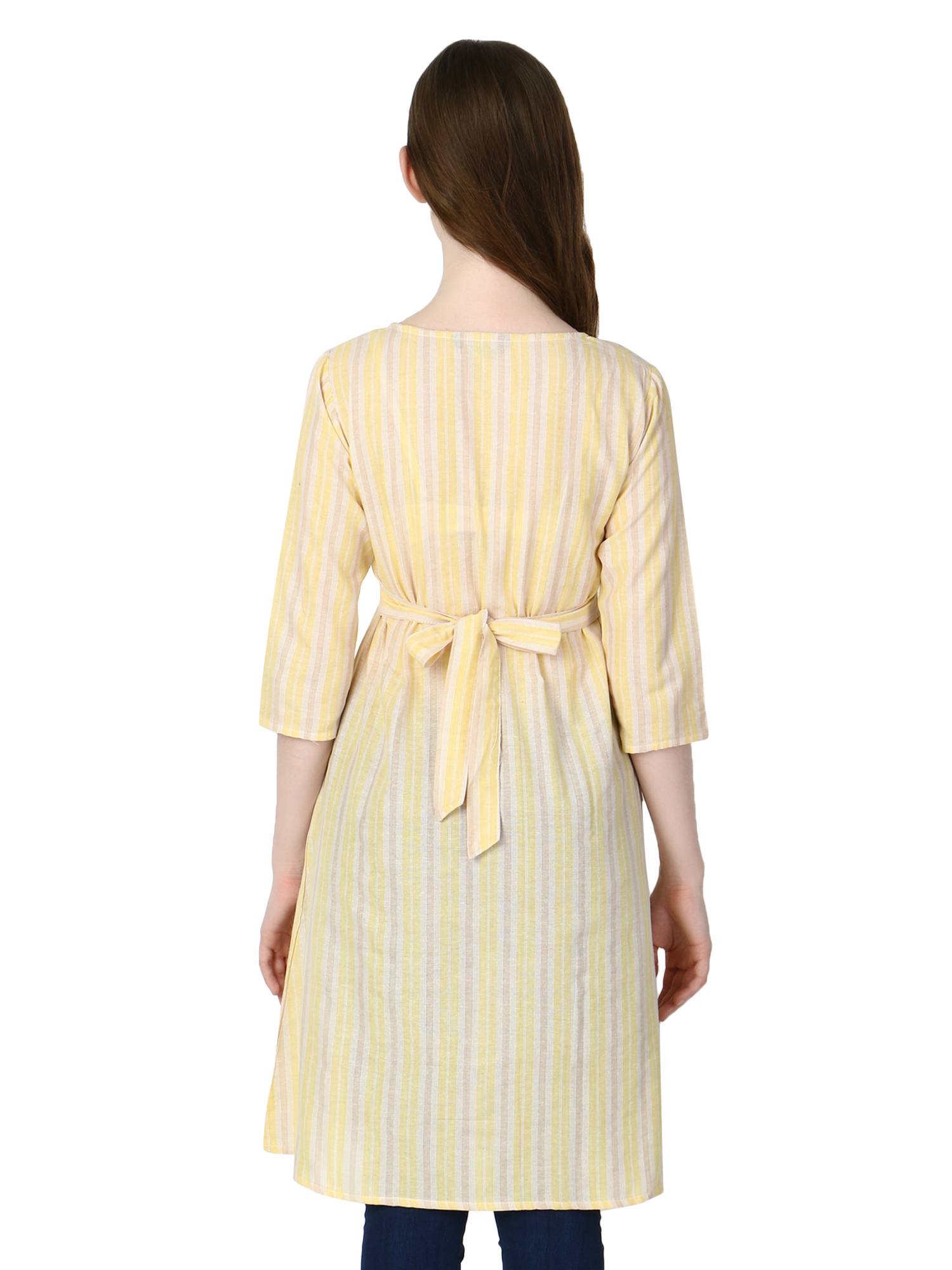 • Hidden Concealed Zipper On Both Sides || Attached Belt For Best Fitting During & Post Pregnancy || Beautiful Woven Striped Pattern On Cotton Handloom.