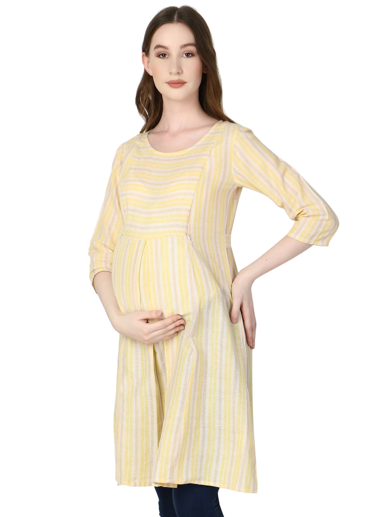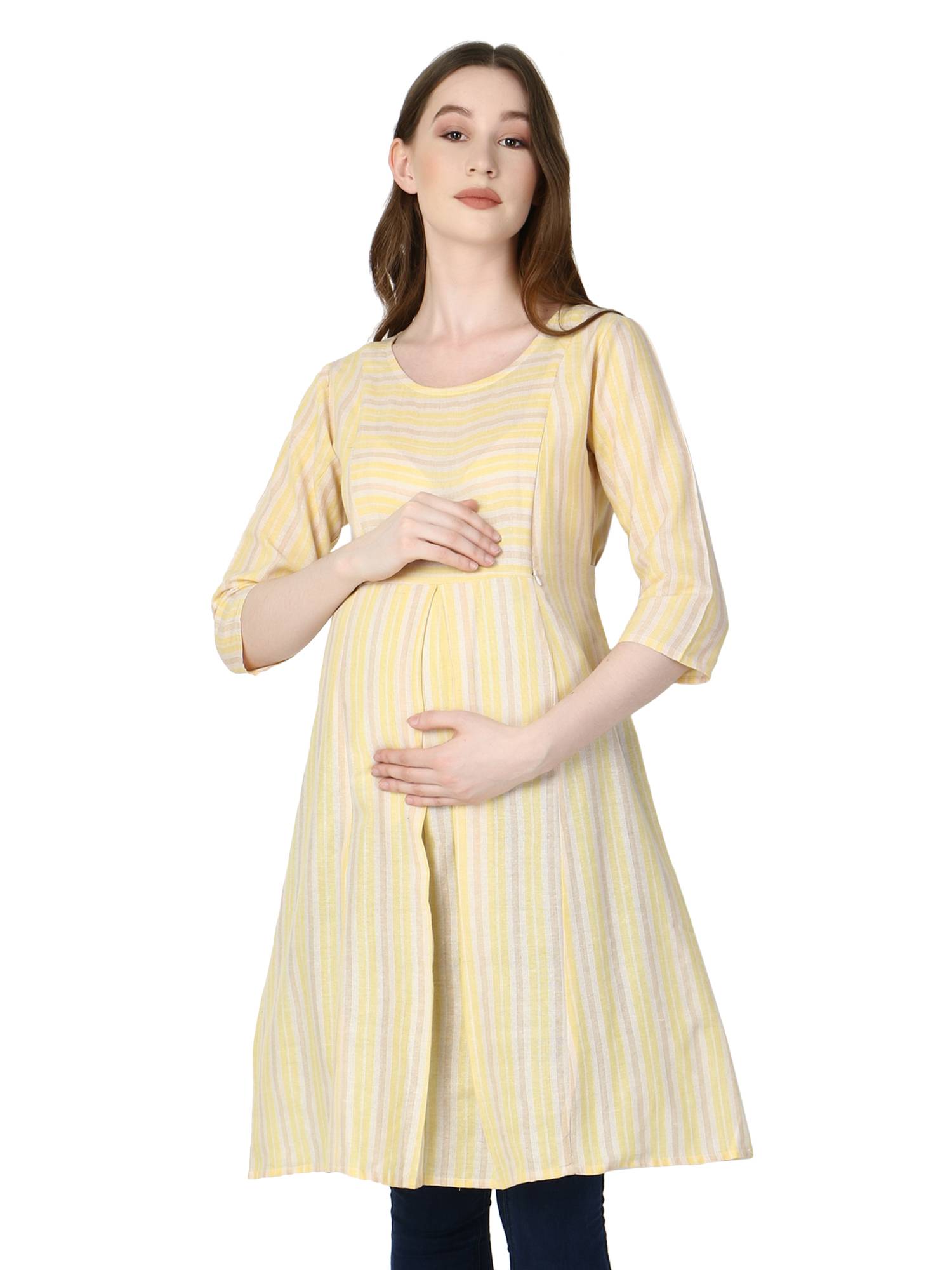 Maternity Feeding Dress With Zippers. (Lemon)