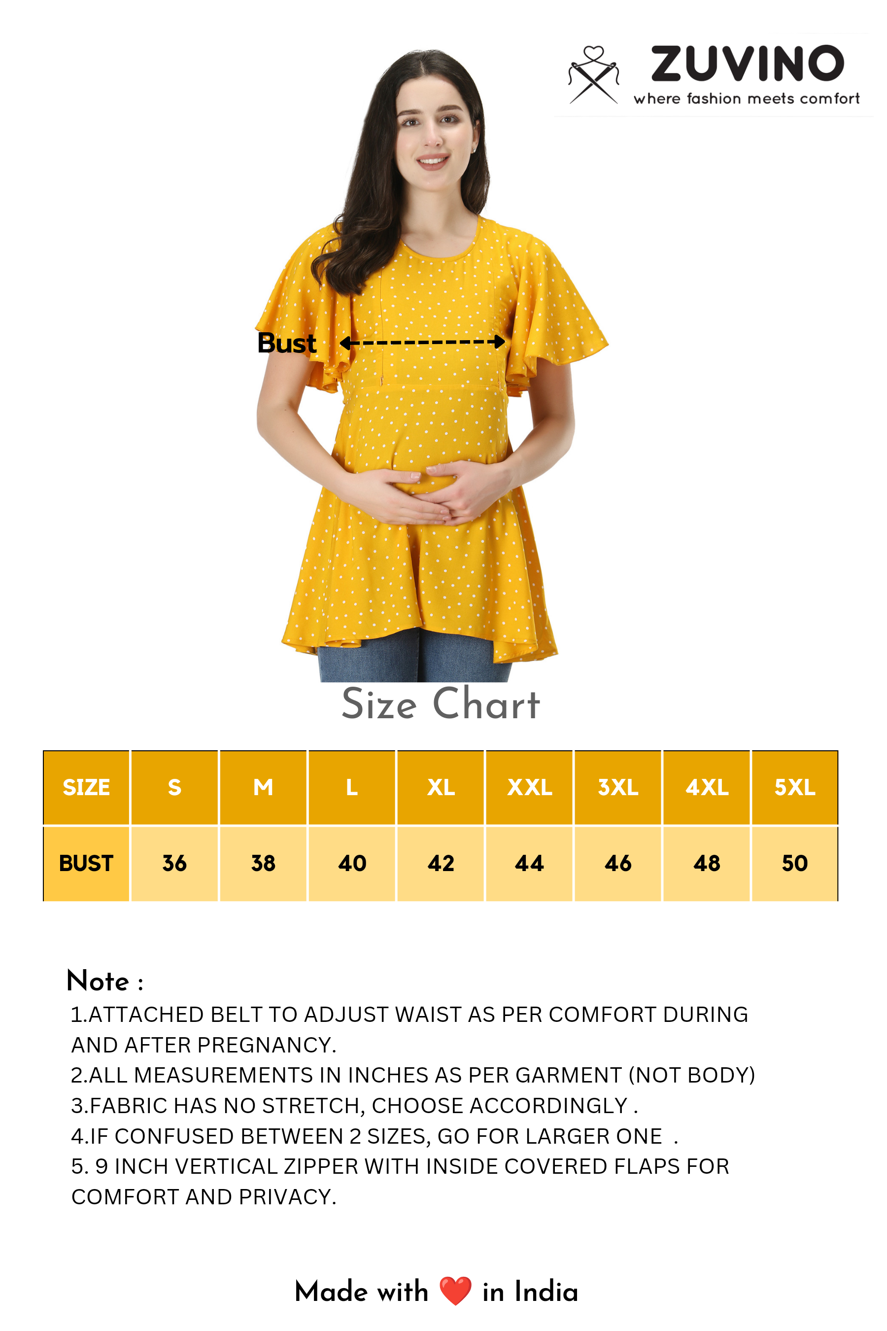 • Attached Belt For Comfortable Fitting During Pre & Post Pregnancy Period || Comfortable Feeding Tops For Jeans || High Quality Zipper For Longer Durability.