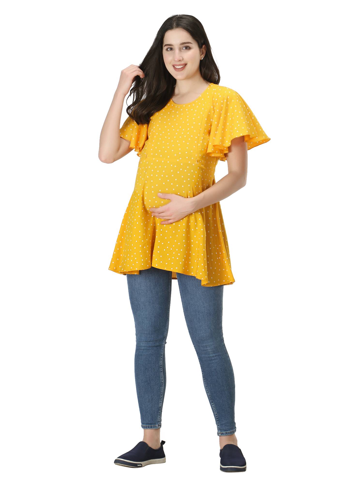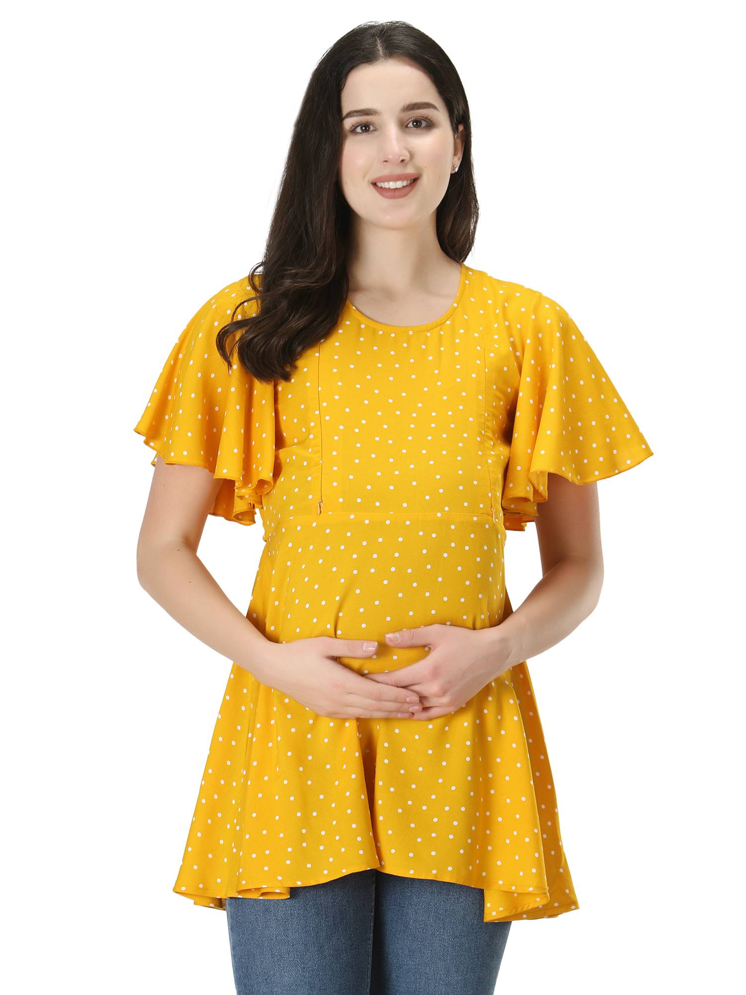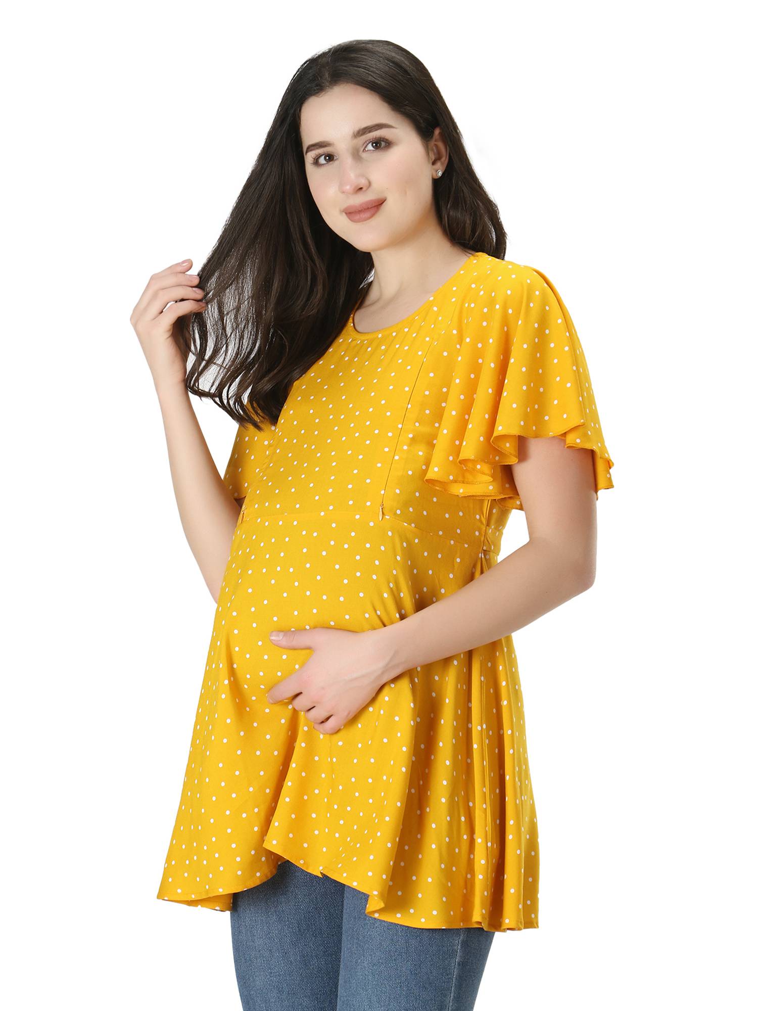 Maternity Feeding Rayon Top With Umbrella Sleeves. (Mustard)