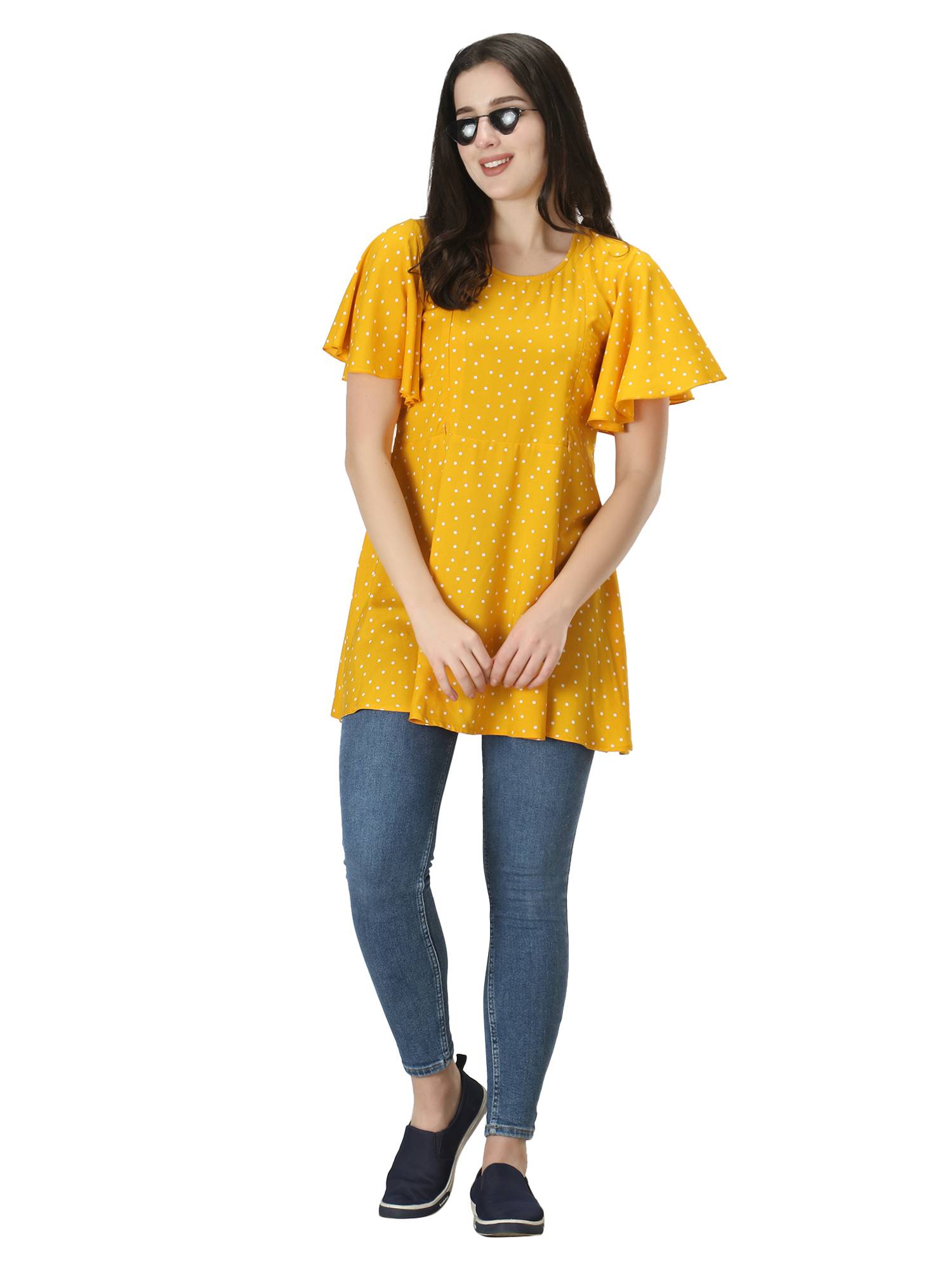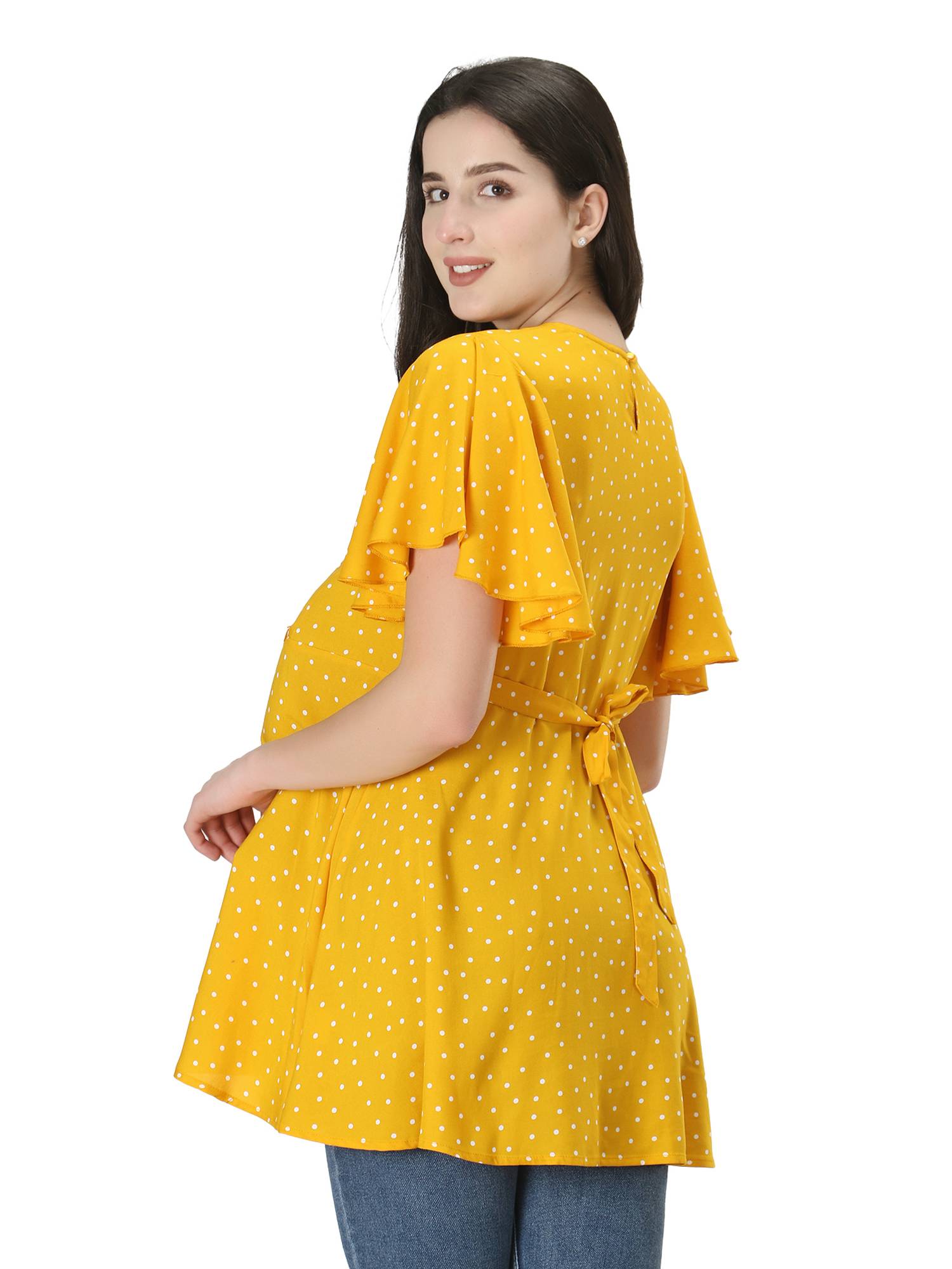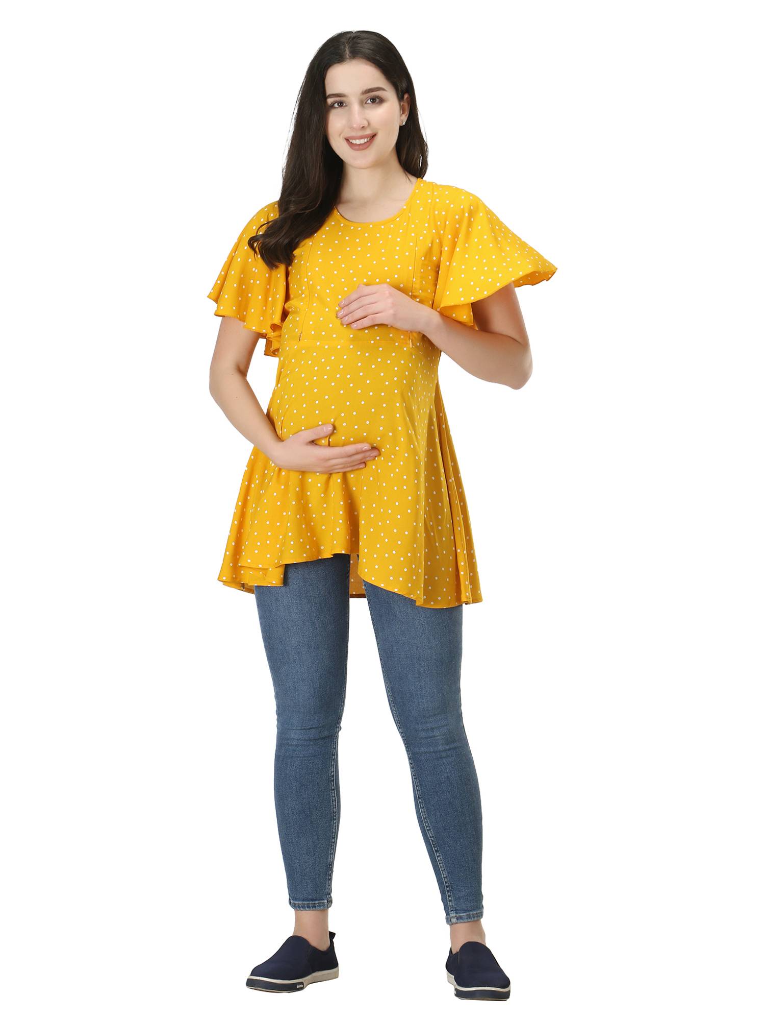 Maternity Feeding Rayon Top With Umbrella Sleeves. (Mustard)