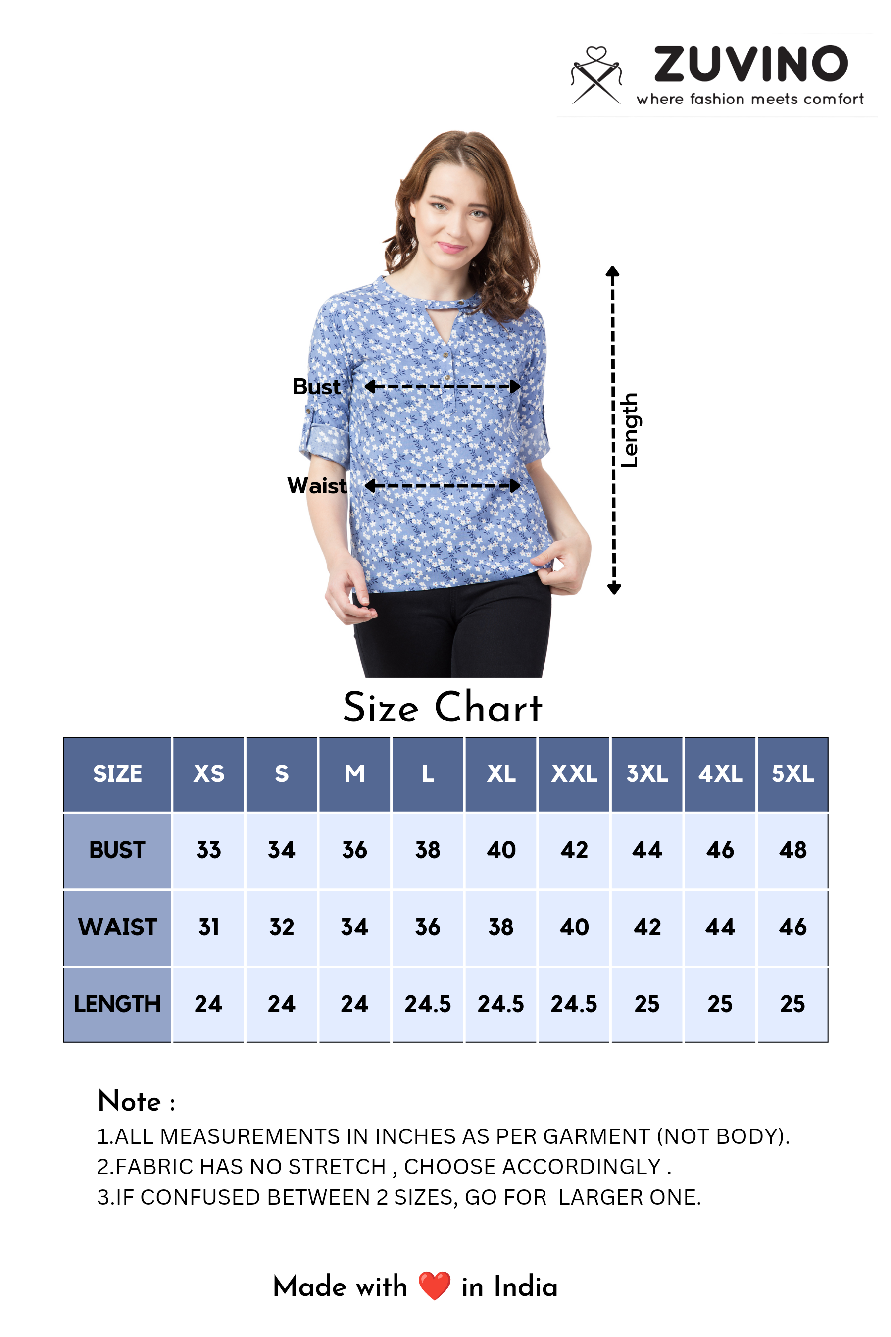 • Model Height 5'8" And Bust 34" Is Wearing Size S. Please Refer To Size Chart Before Making Purchase.