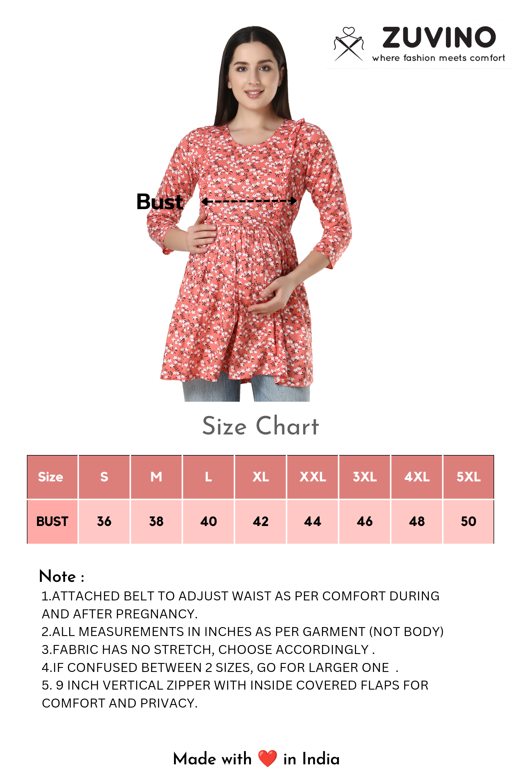 • Pleats Around Tummy Area To Hide Baby Bump In Style || Attached Belt For Comfortable Fitting During Pre & Post Pregnancy Period || Comfortable Feeding Tops For Jeans || High Quality Zipper For Longer Durability.
