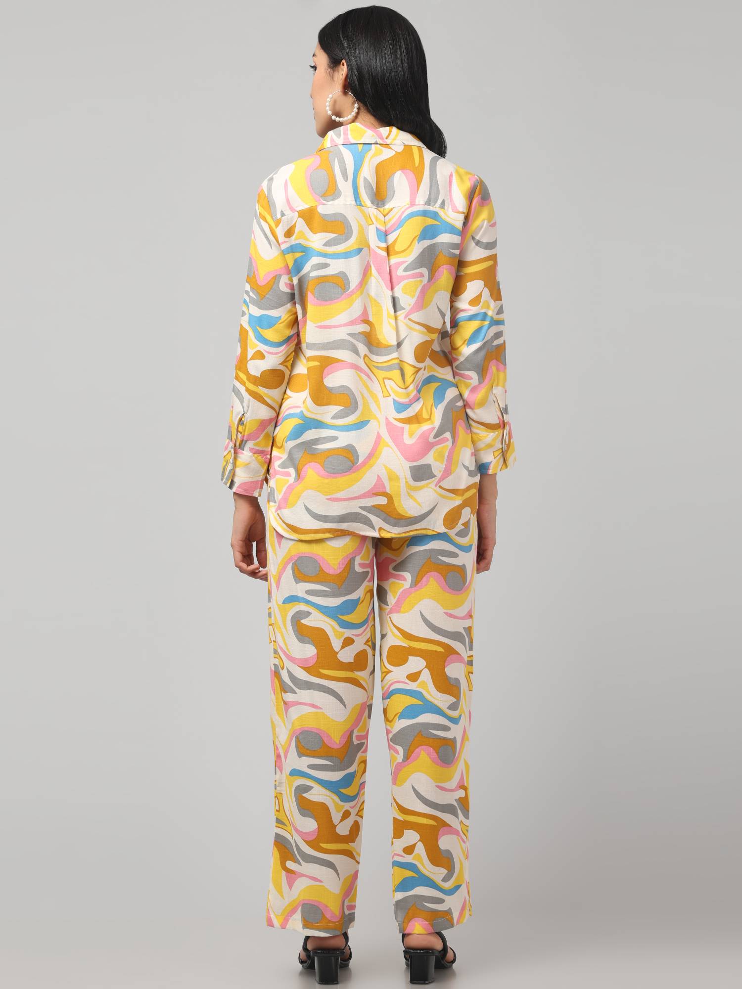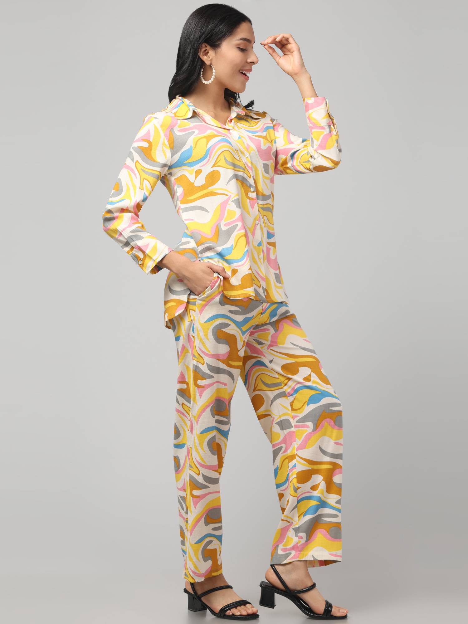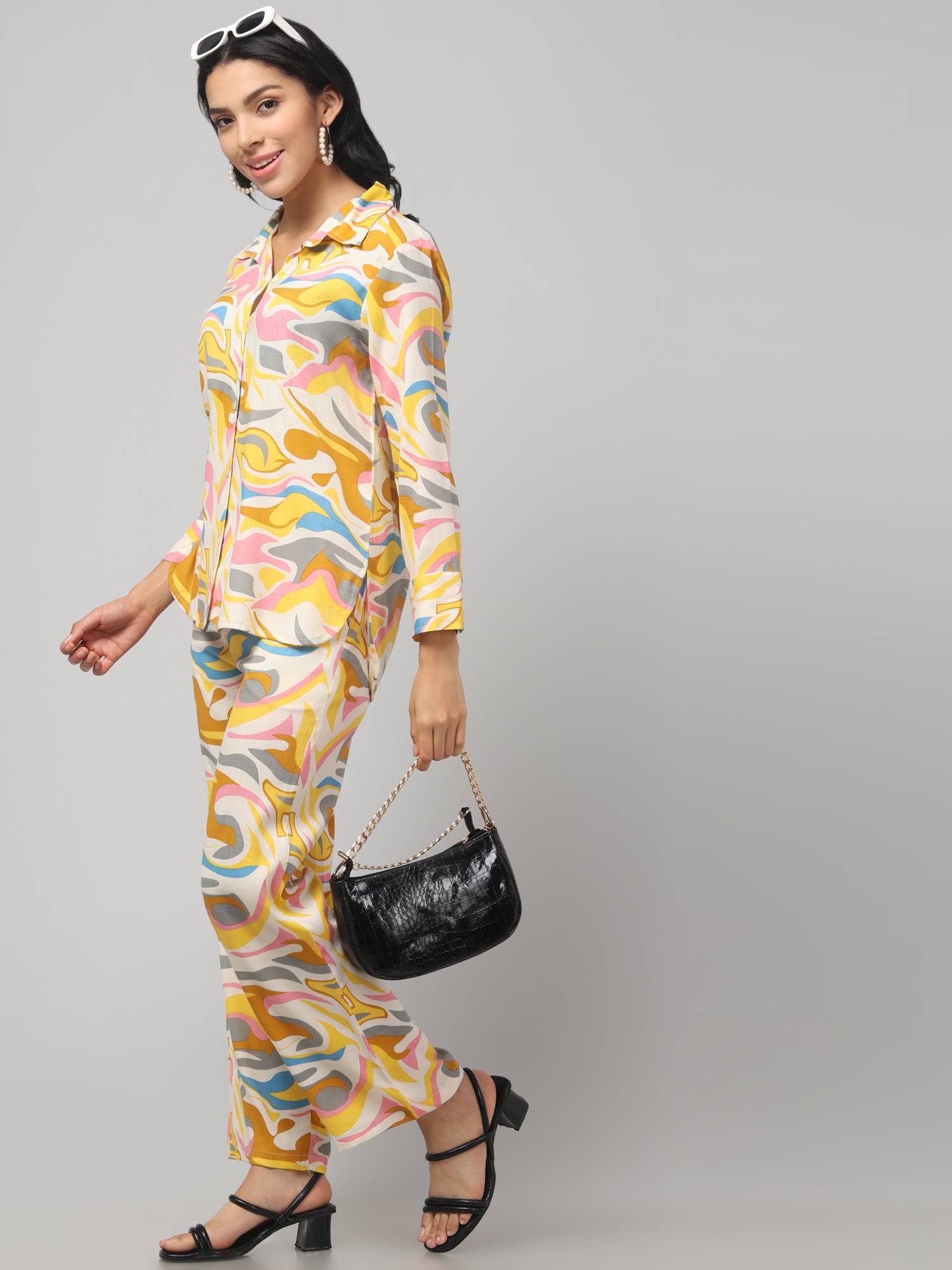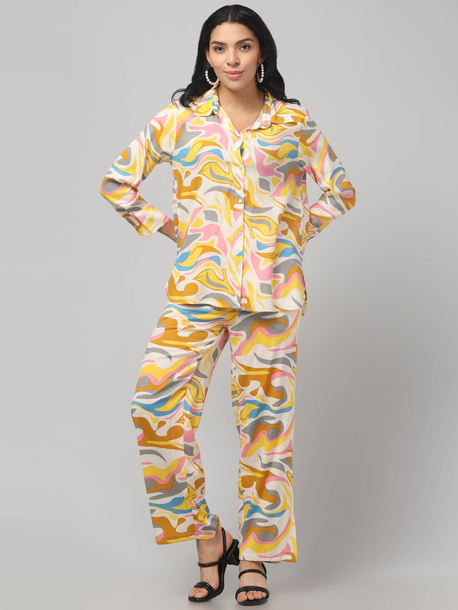 Stylish Co Ord Set For Women || Relaxed Fit Shirt & Wide-Leg Pants. (Lemon)