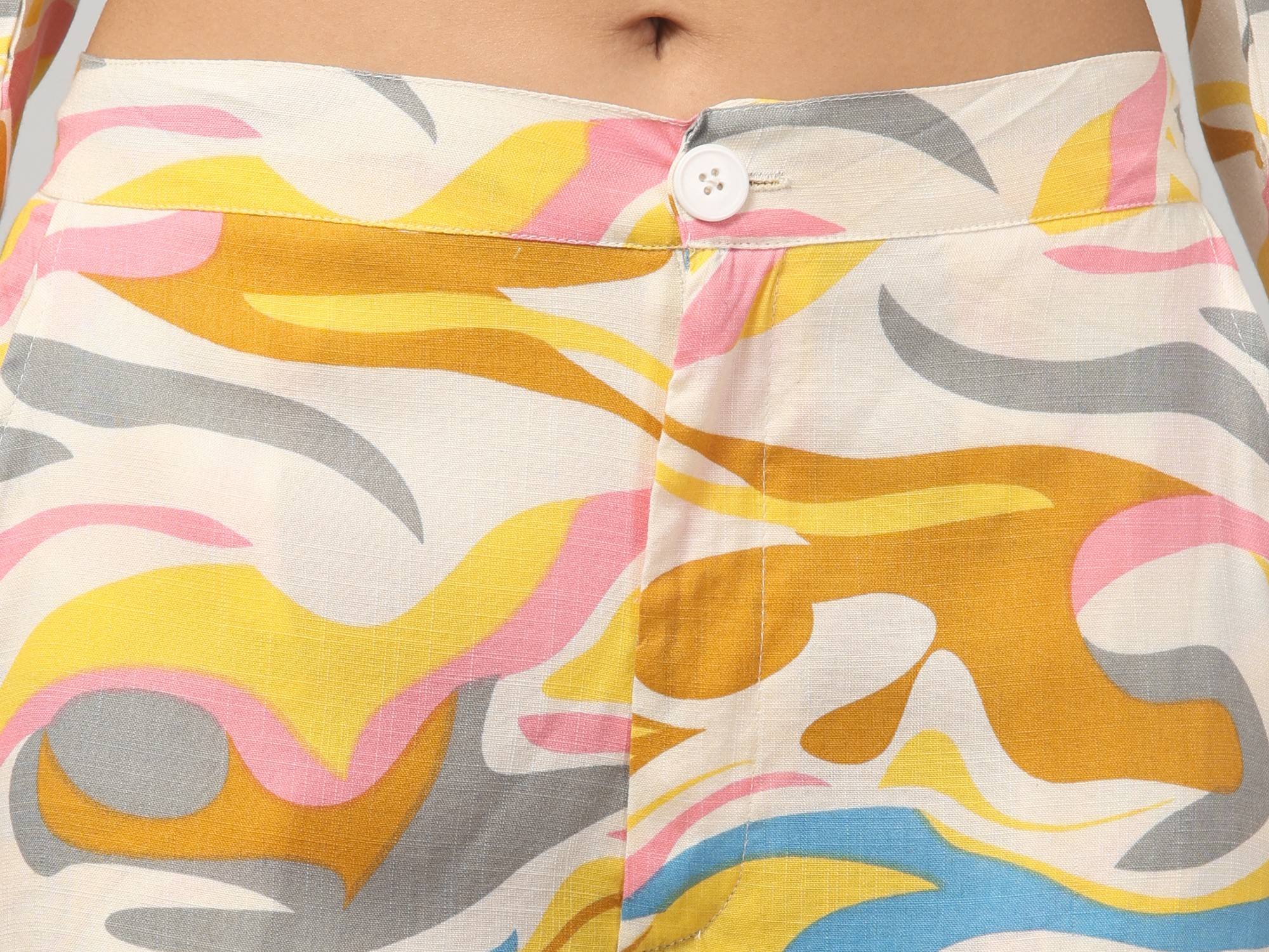 • FABRIC: Cotton material offers breathable comfort with vibrant abstract prints in yellow, green and grey tones.