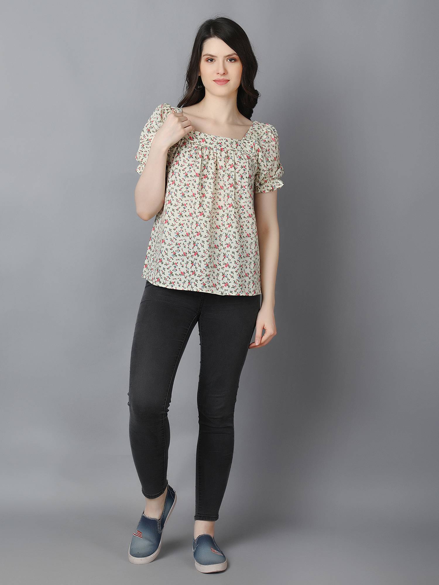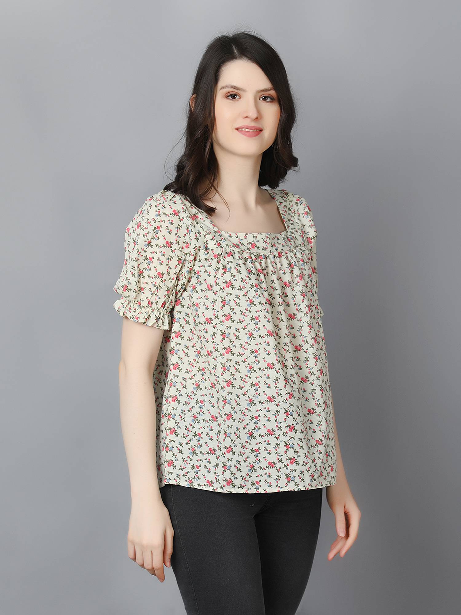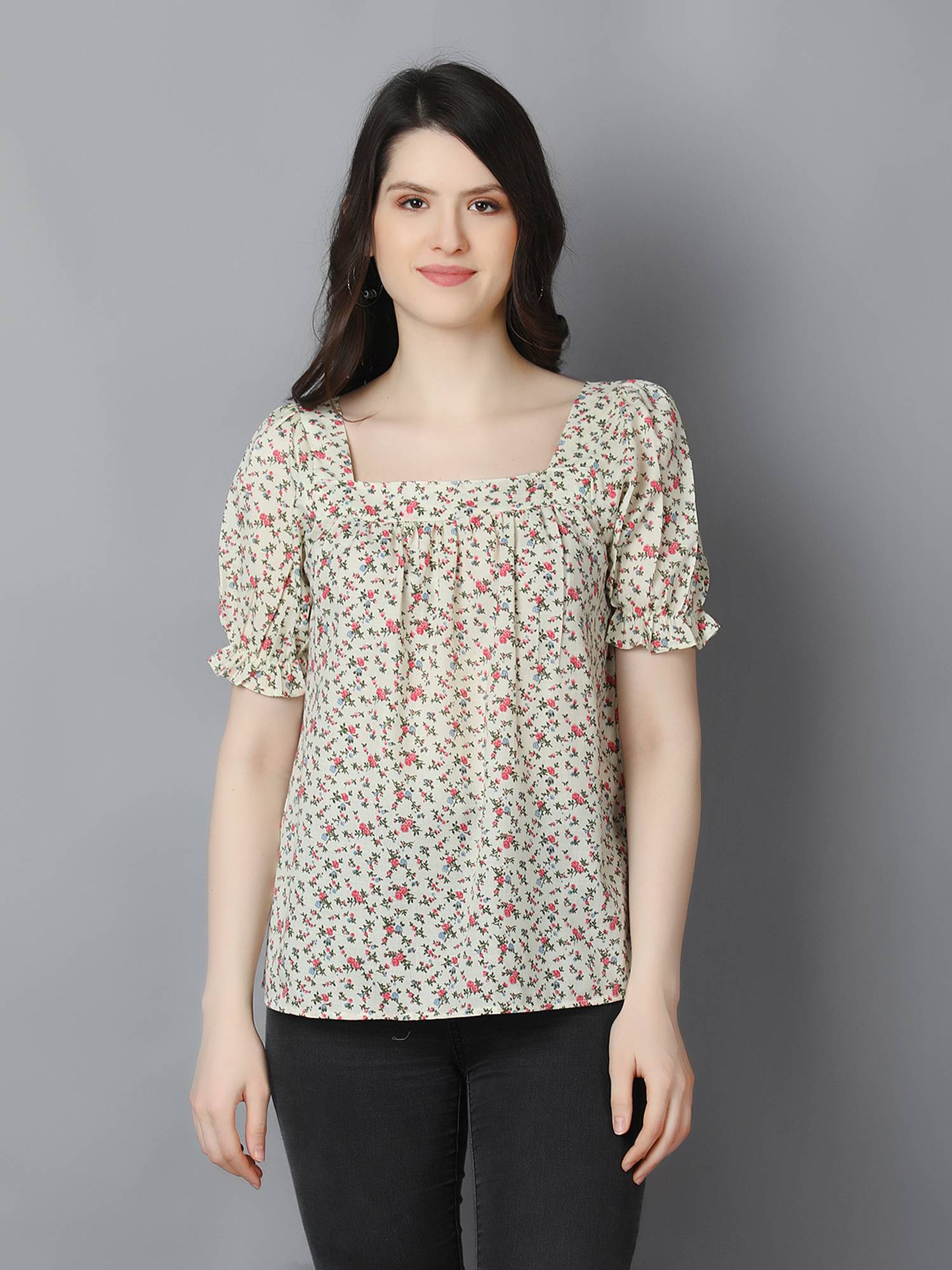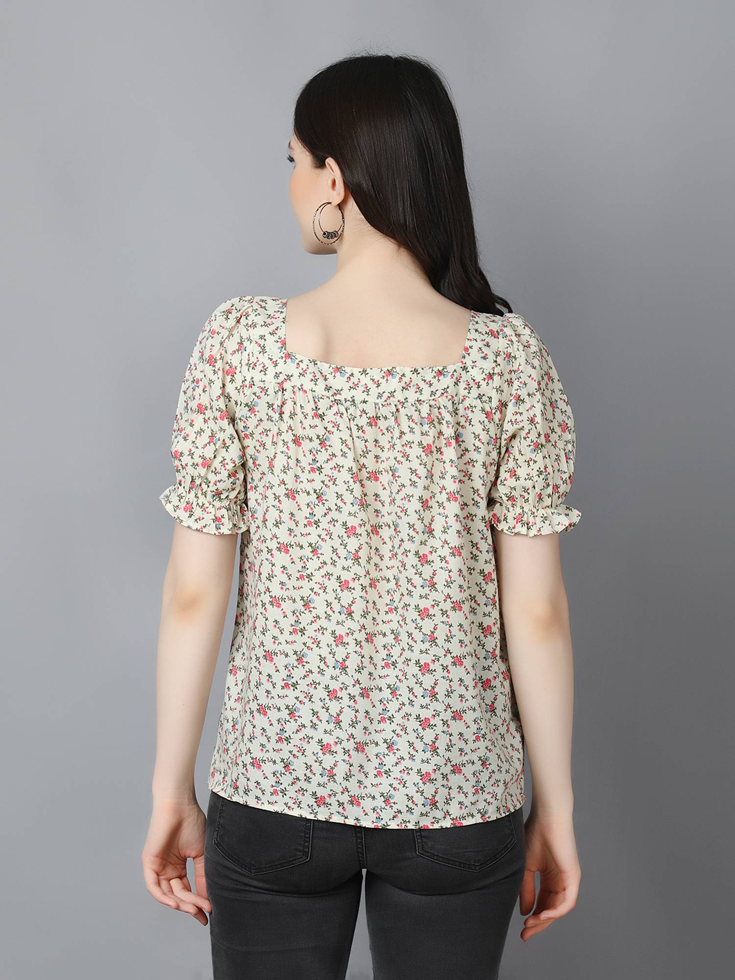 • Loose Relaxed Fit || Square Neckline || Elasticated Puff Sleeves For Best Fit.