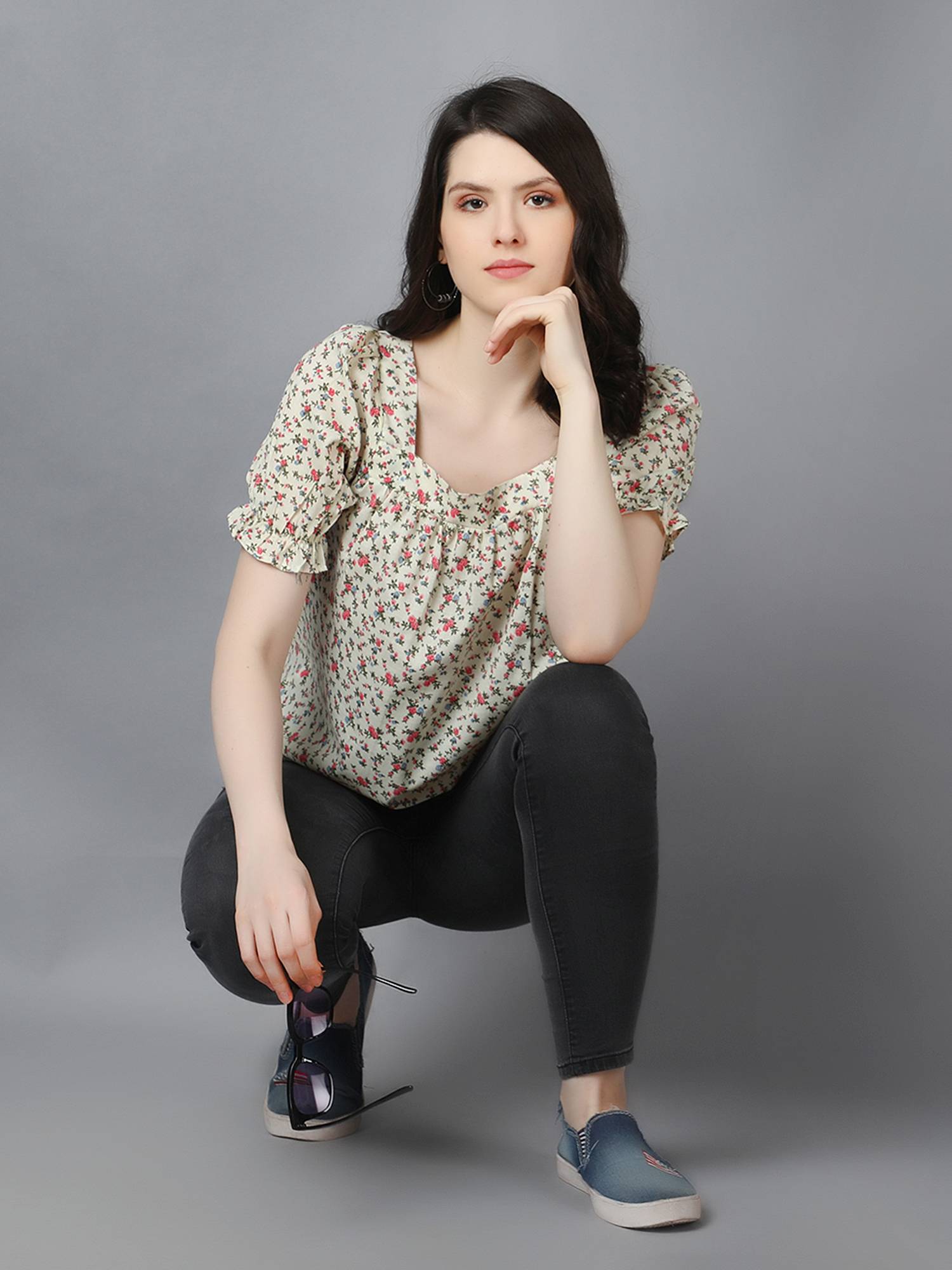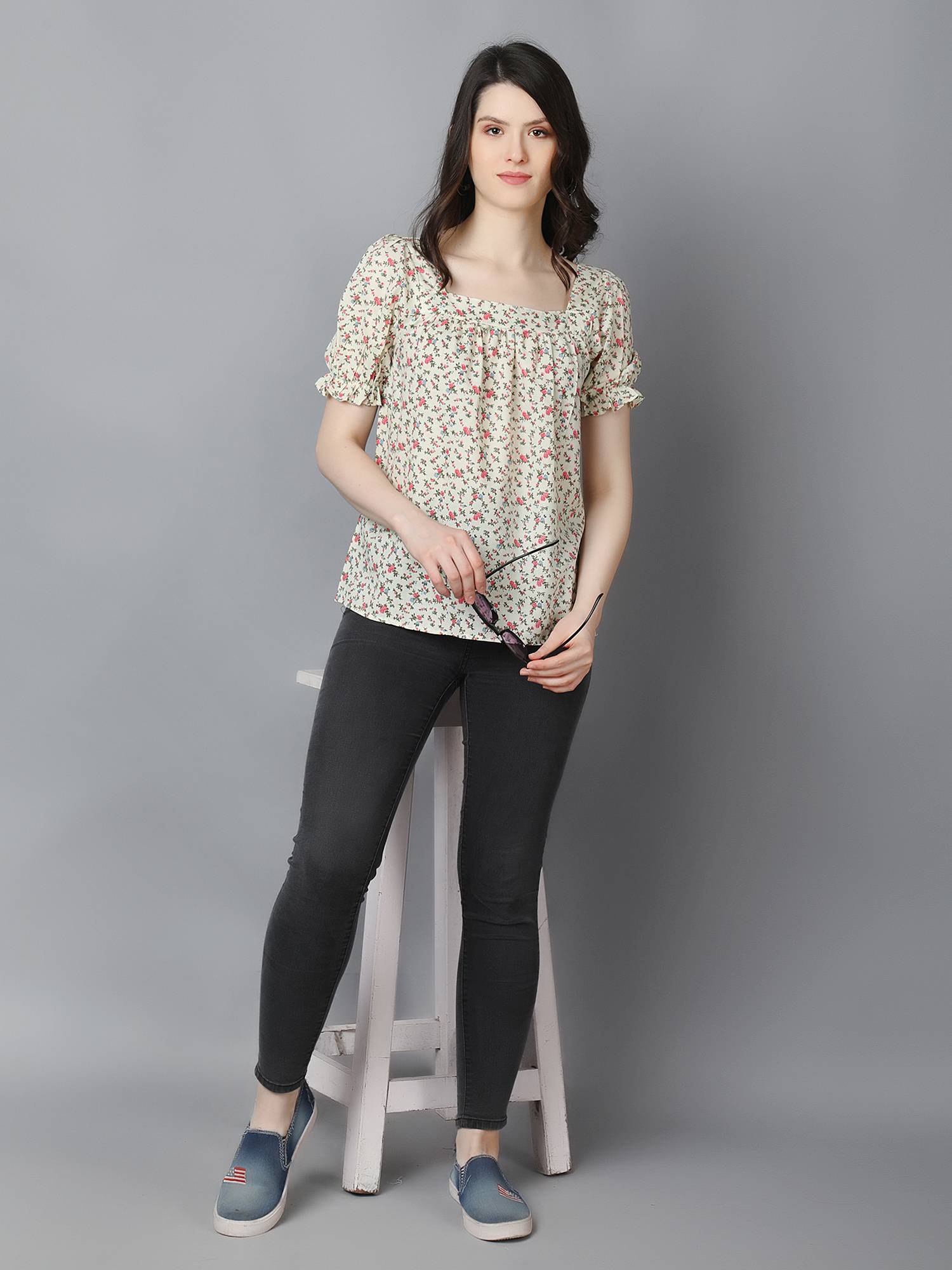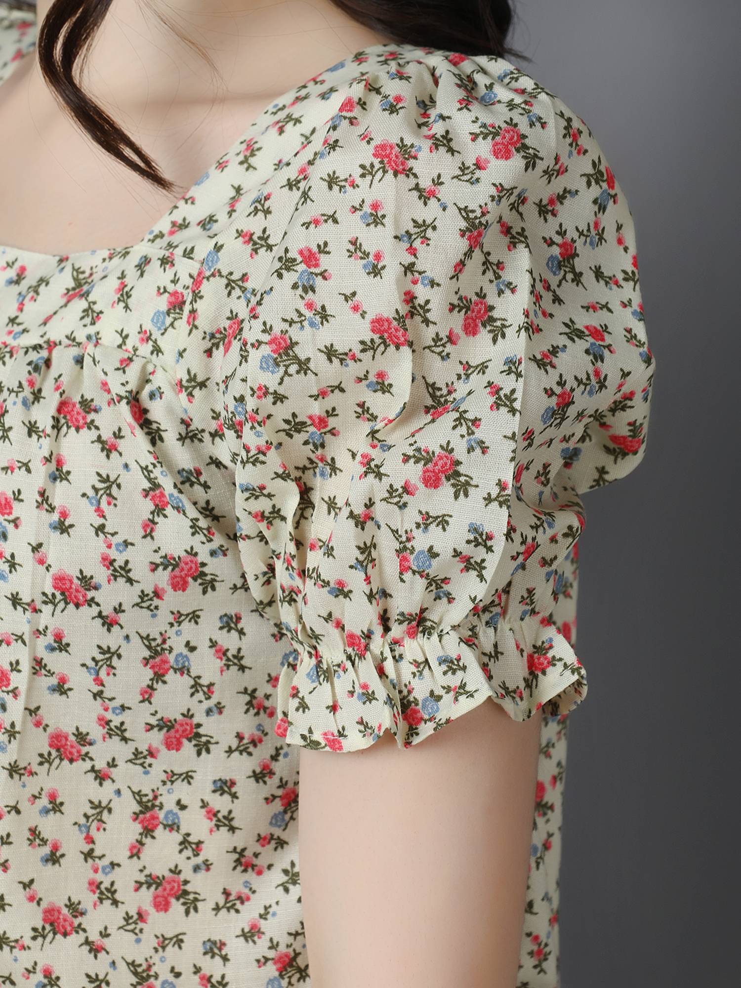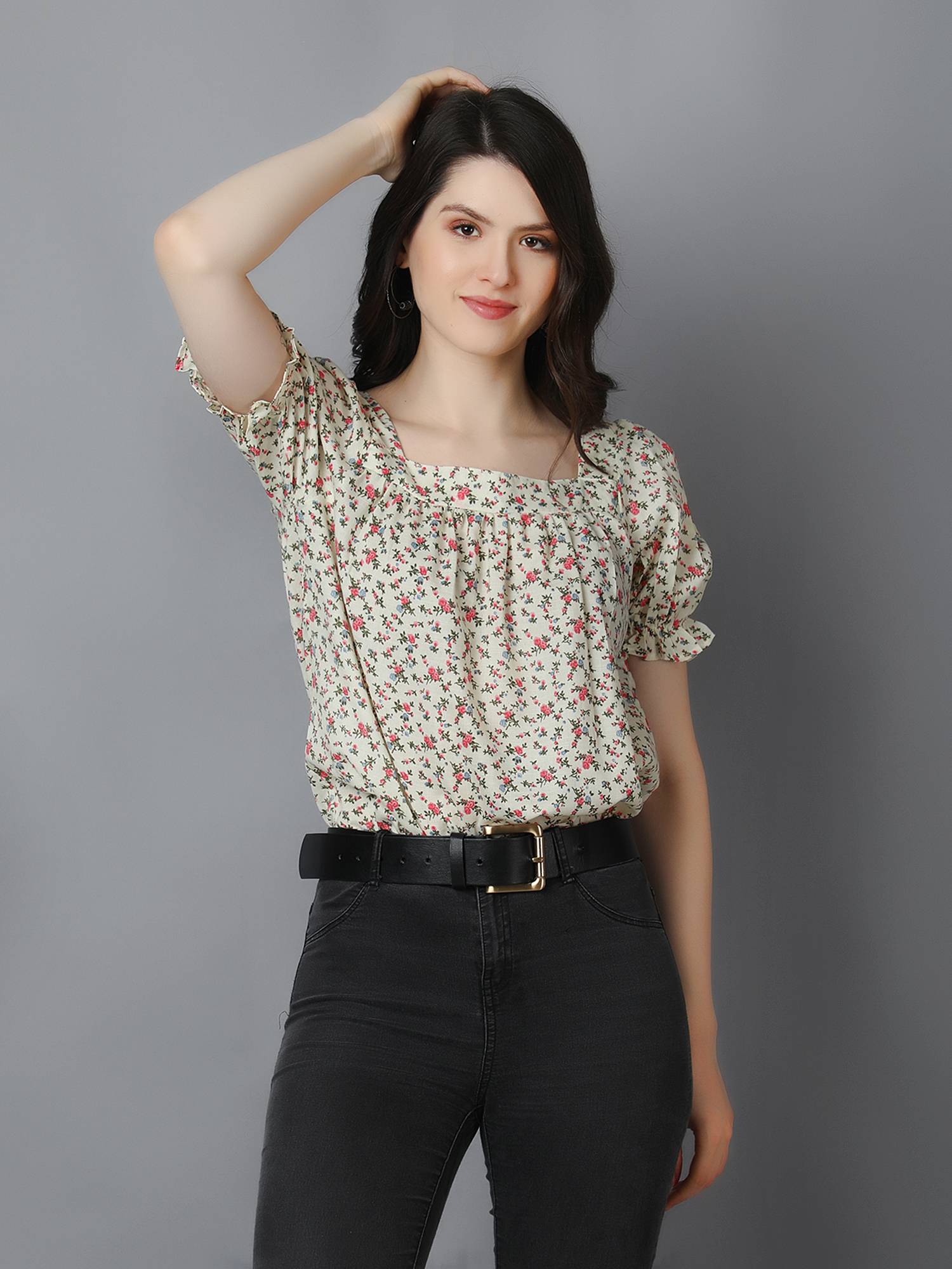 • Loose Relaxed Fit || Square Neckline || Elasticated Puff Sleeves For Best Fit.