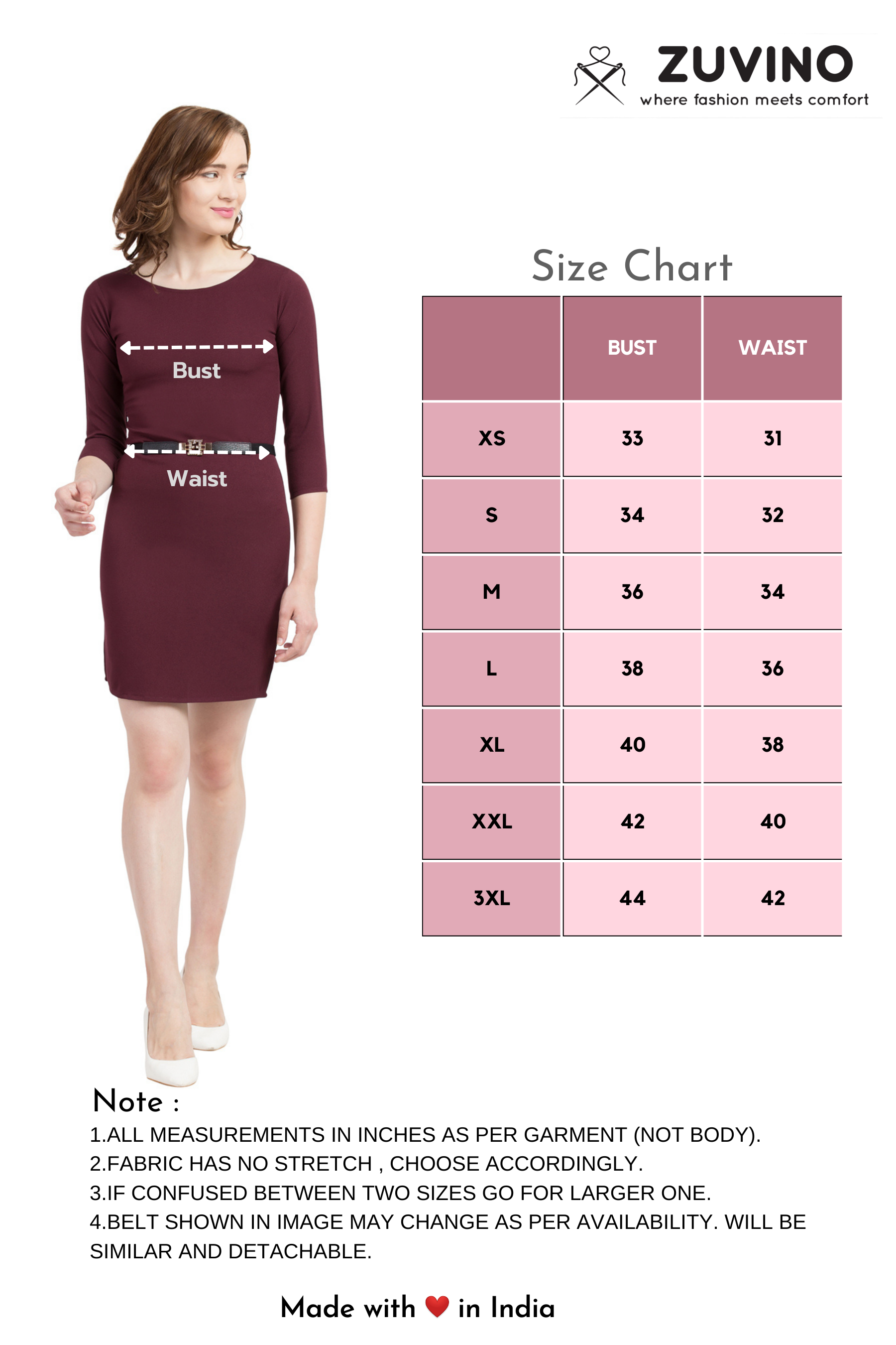 • Round Neck || 3/4 Sleeves || Zipper In Back || Bodycon Shape.