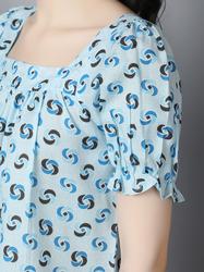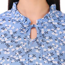 Rayon Floral Band Collar Top. (Sky Blue)
