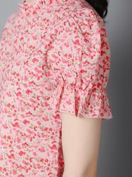 Printed Floral Cotton Ruffle Sleeve Summer Top (Pink Floral)