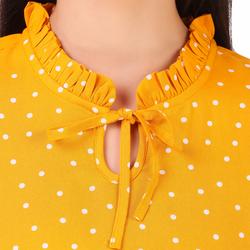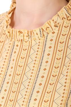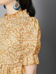 Rayon Floral Bell Sleeved Top With Ruffle Neckline (Mustard)