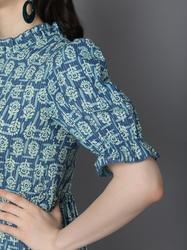 Cotton Balloon Sleeved Peplum Top. (Blue)