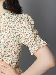 Printed Floral Cotton Ruffle Sleeve Summer Top (Lemon Floral)