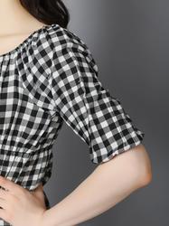 Square Neck Cut Sleeved Jumpsuit. (Gingham)