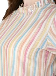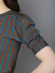 Striped Cotton Cuffed Sleeve Top. (Brown)