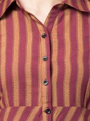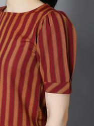 Striped Cotton Cuffed Sleeve Top. (Wine)