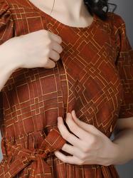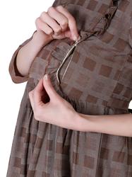 Maternity Feeding Dress With Zippers For Easy Nursing. (Brown)