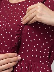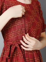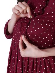 Maternity Feeding Dress With Zippers For Easy Nursing. (Wine)