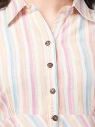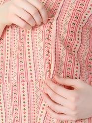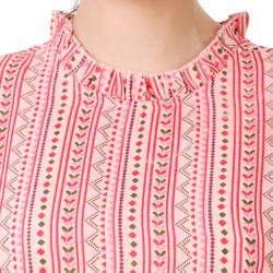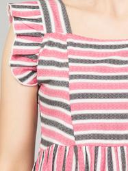 Striped Printed Cotton Ruffle Sleeve Top (Pink)