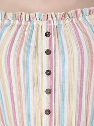 Striped Cotton Ruffle Sleeve Top (Pearl)