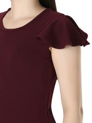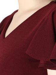 Flutter Sleeve Top With V-Neck. (Maroon)