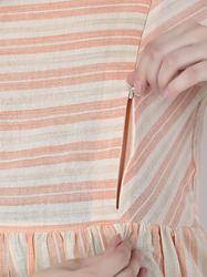Striped Cotton Cap Sleeve Peplum Top. (Pink)
