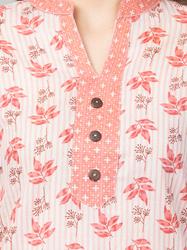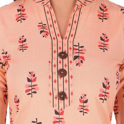 Cotton Printed Collar Kurta Set With Pant (Peach)
