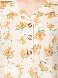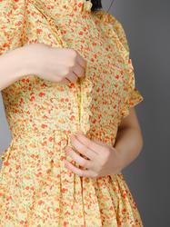 Floral Cotton Notch Collared Short Dress. (Lemon)