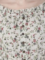 Floral Printed Cotton Ruffle Sleeve Top (Grey)