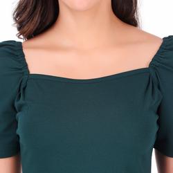 Puffed Sleeves Peplum Top. (Green)