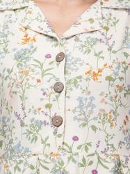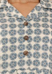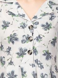 Floral Cotton Notch Collared Short Dress. (Grey)