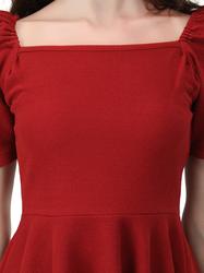 Puffed Sleeves Peplum Top. (Wine)