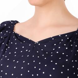 Rayon Floral Band Collar Top. (Navy Blue)